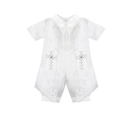 Elegant shantu outfit with puffed shorts, a decorative shirt, and a stole with pearls, rhinestones, embroidery, and edge trim.