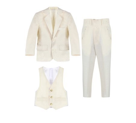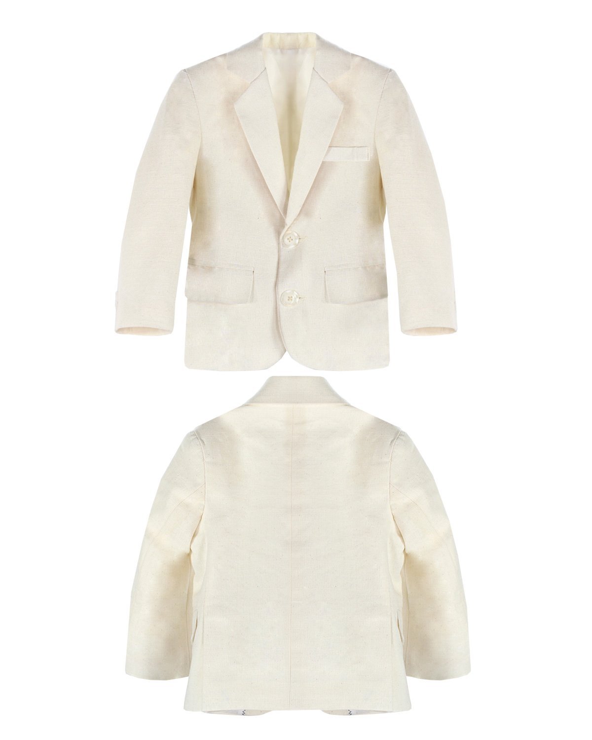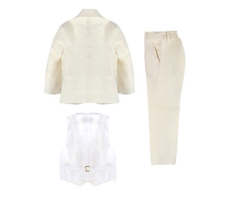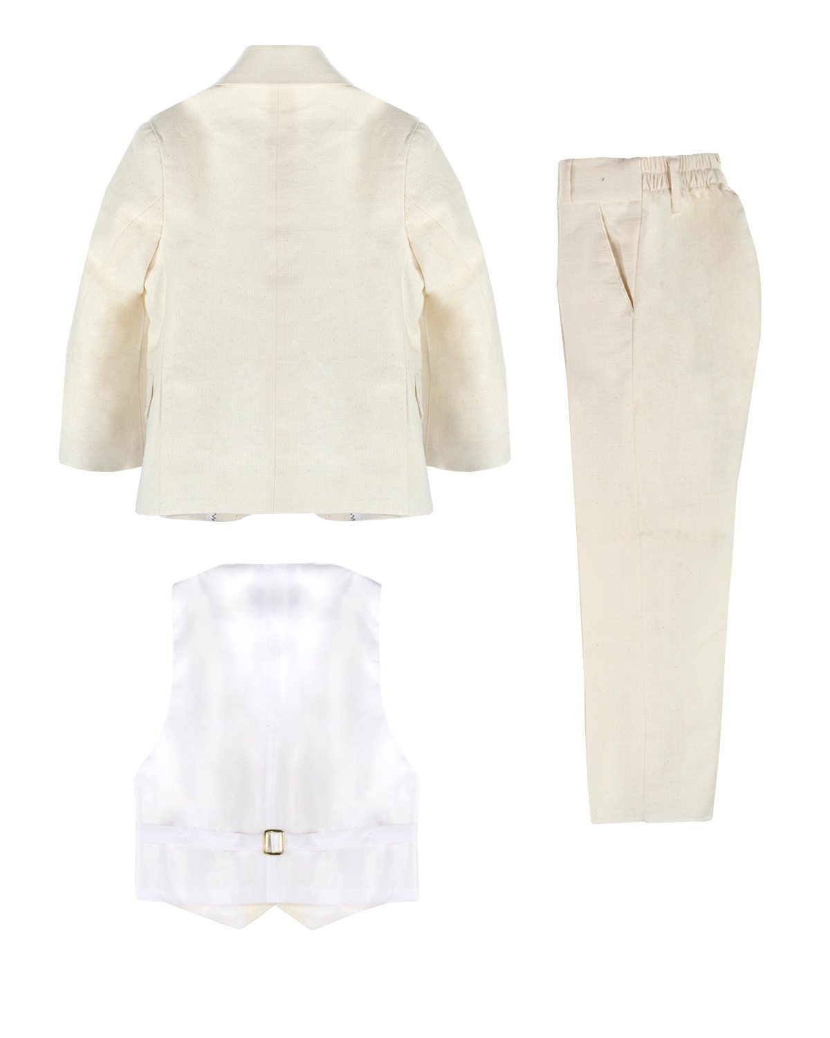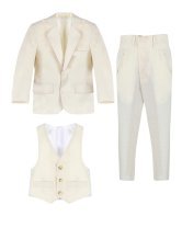 Jonathan model linen suit set including trousers, jacket, and vest, ideal for formal events and special occasions.
