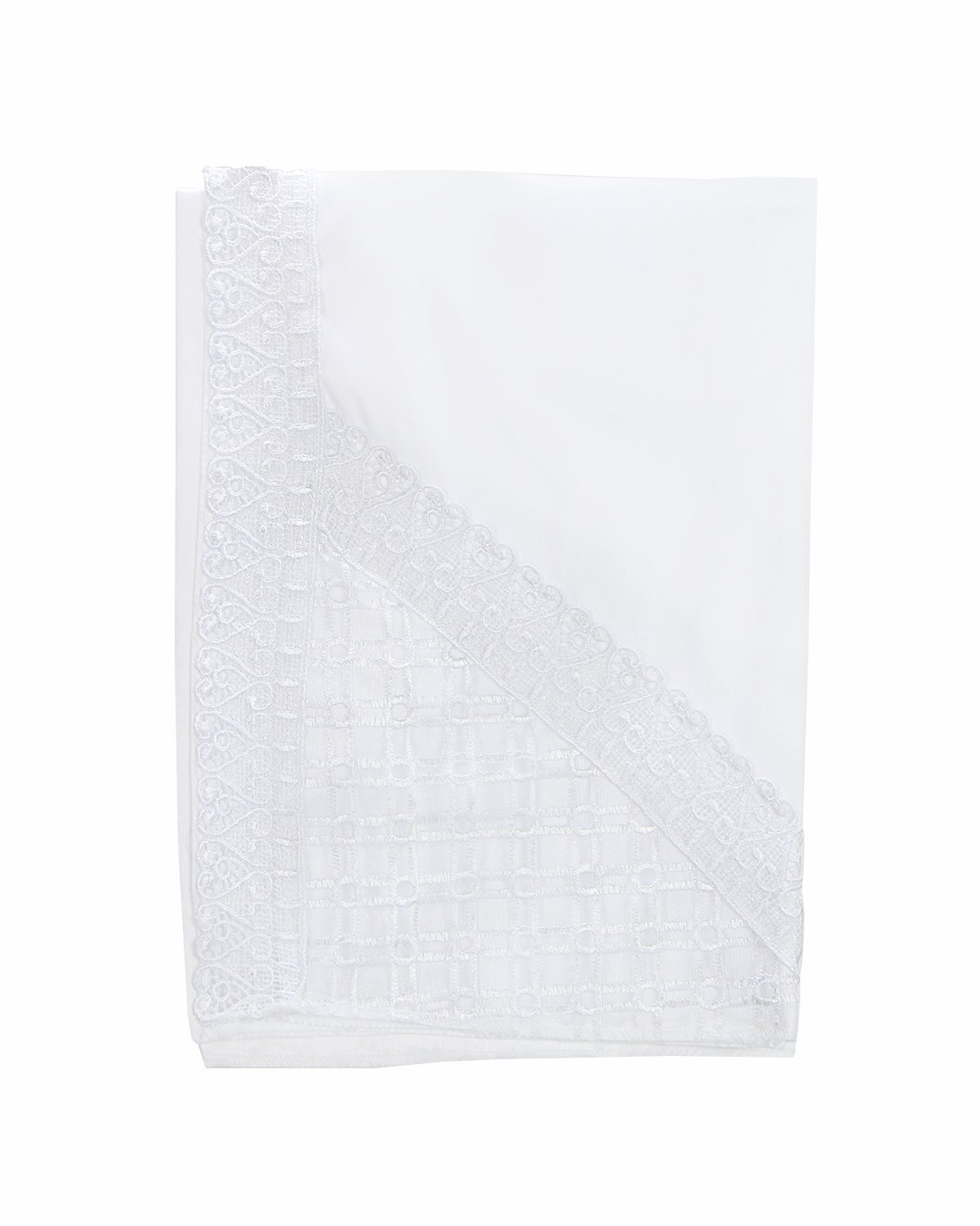Dalila Baptism Swaddle with an embroidered border and corner embroidery. Soft and high-quality, ideal for the baptism ceremony.