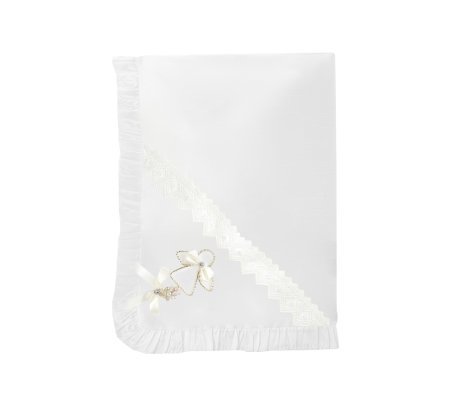 The Angel Baptism Sheet Style is an elegant and meaningful choice for your baby’s special day. Made of shantung, it features ruffled edges and delicate details such as embroidery, ribbons, pearls, and rhinestones. Its highlight is a charming angel figure crafted from rhinestones, adding a symbolic and unique touch. Perfect for such an important occasion.