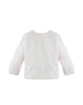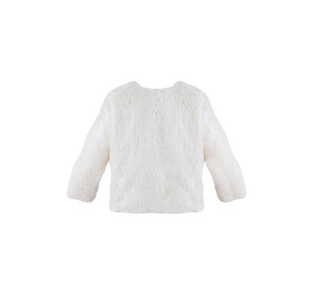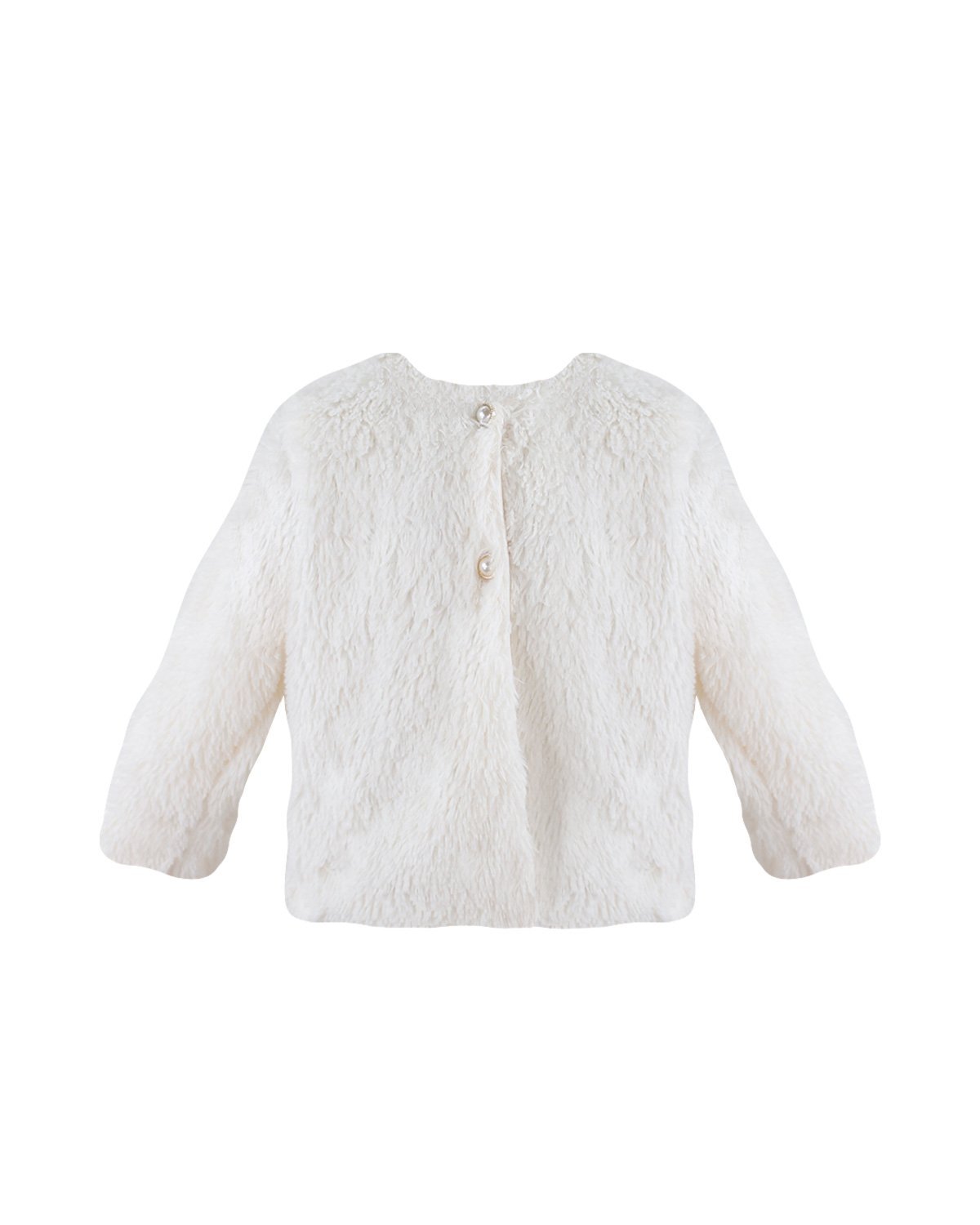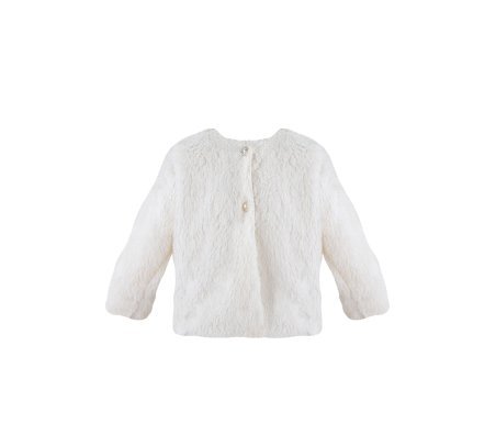 This girl’s coat is the perfect piece to complete any elegant outfit. Made from a soft, plush-like fabric, it offers both warmth and sophistication. The back pearl-style buttons and long sleeves give it a timeless touch, ideal for pairing with dresses at baptisms, communions, or formal occasions.