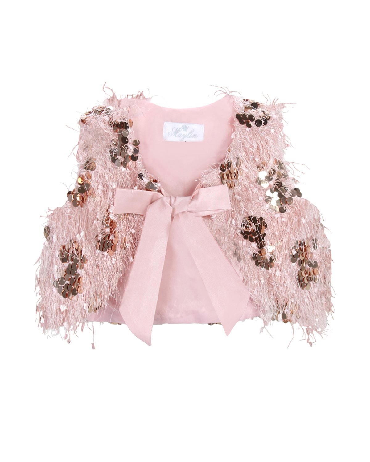 Girl's Vest, made from sequin fabric with fringes and inner lining. Perfect for special events or adding a touch of sparkle.