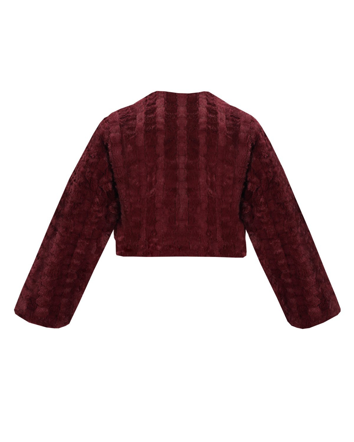 Toreta Style Girl's Coat, made from plush fabric with a lining and long sleeves, provides warmth and style for cold days.