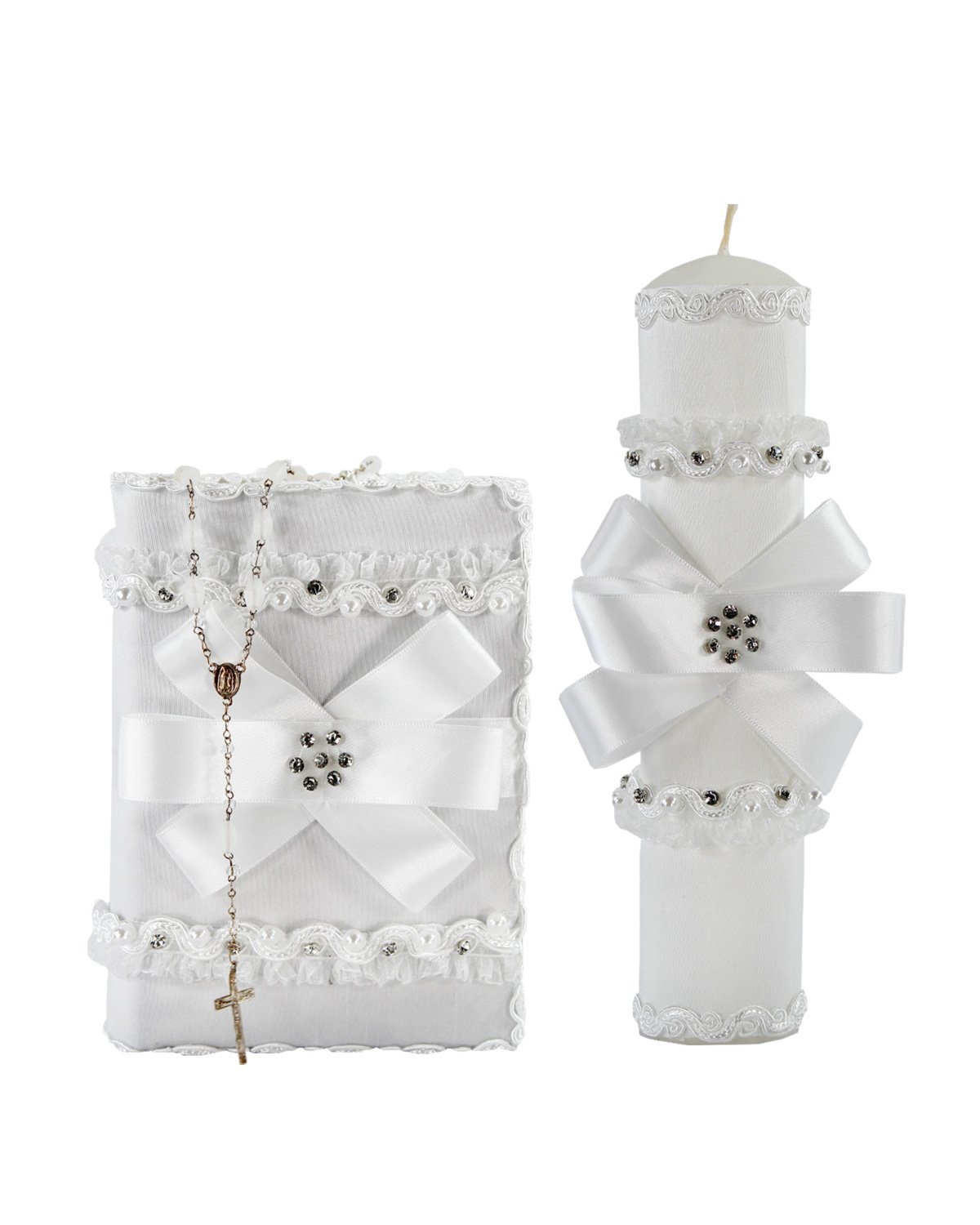 The First Communion Kit in Bow Style is a high-quality set that includes everything needed to celebrate this important event. Crafted with the finest materials and an exclusive design from the Maylin brand, this kit is the perfect complement for an unforgettable day.