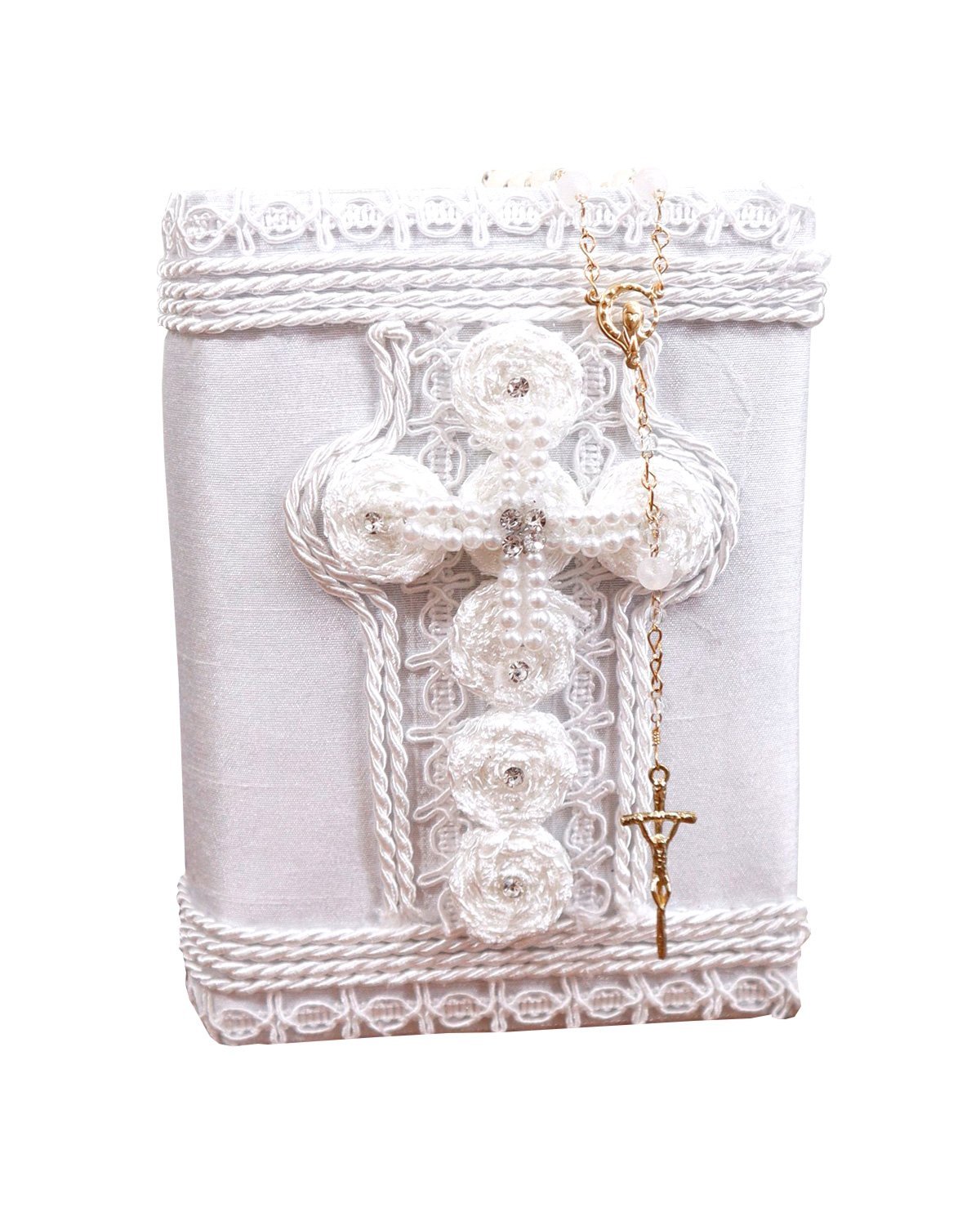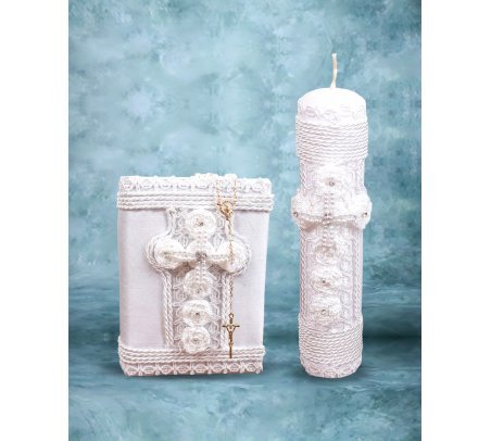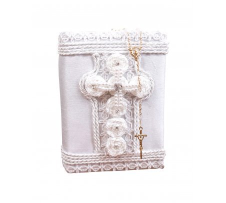 Celebrate your child's first communion with our elegant shantung and guipure kit. With a cross-shaped detail that makes it unique, this kit is ideal for creating lasting memories of such an important day.