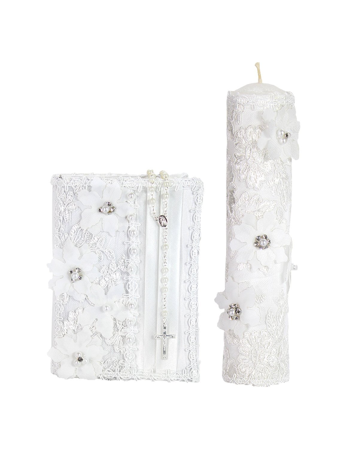 Make the first communion truly special with this stunning kit from Maylin. Made of high-quality embroidered lace, this kit features a unique 3D flower design with rhinestones that makes it unique and eye-catching.