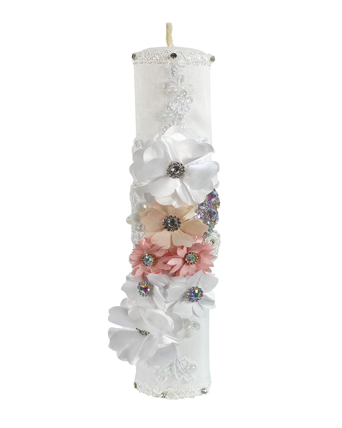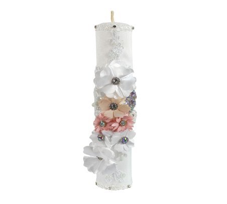 The Xia Confirmation Candle, decorated with embroidery, 3D flowers, iridescent rhinestones, and pearls, is perfect for ceremonies and as a commemorative gift.