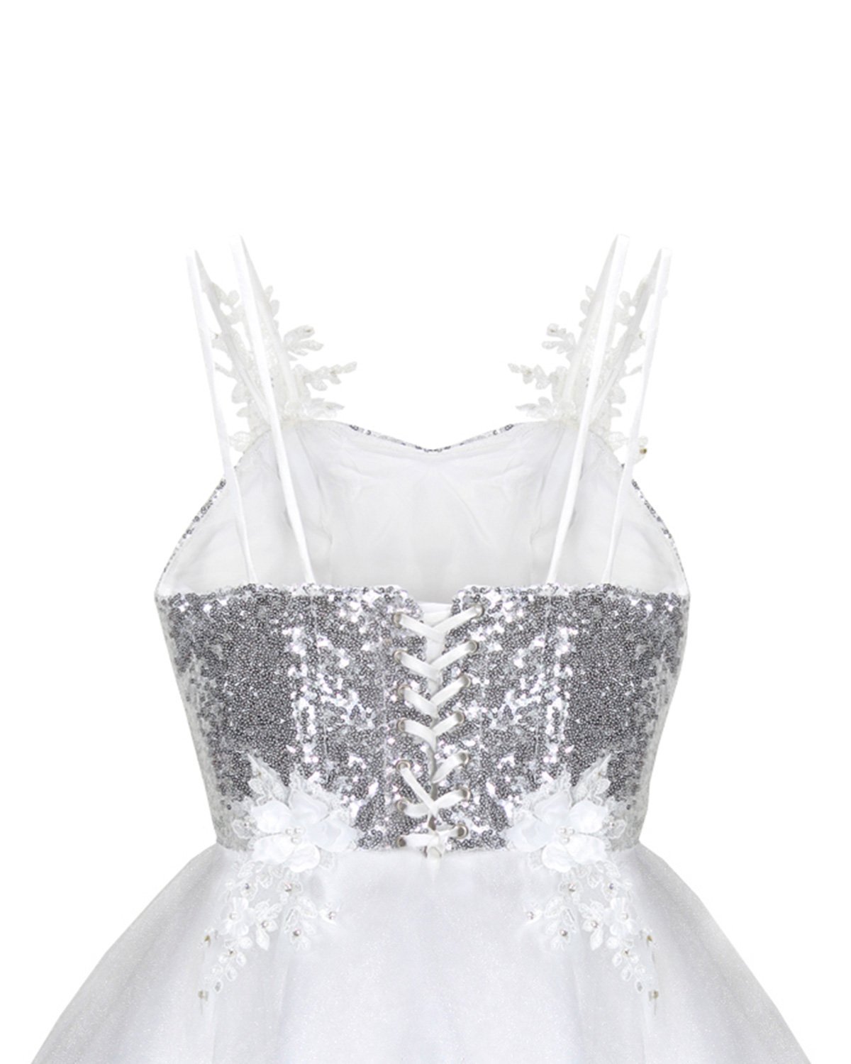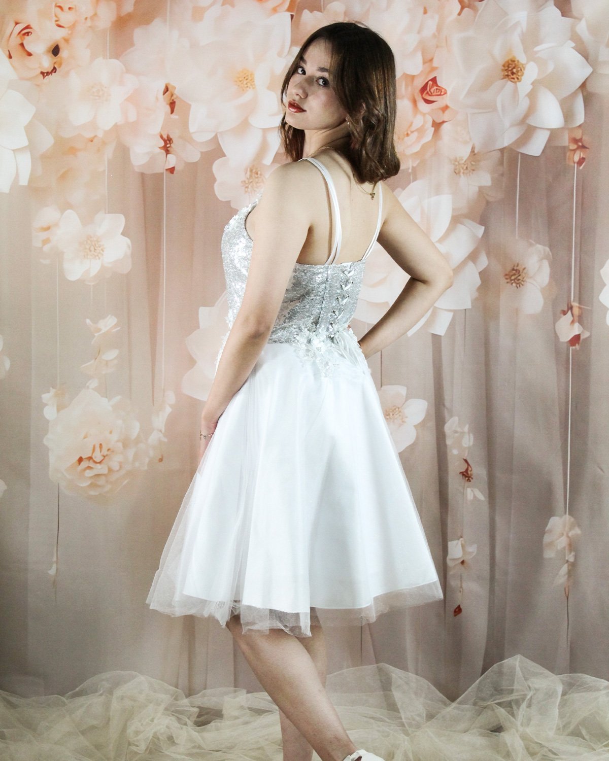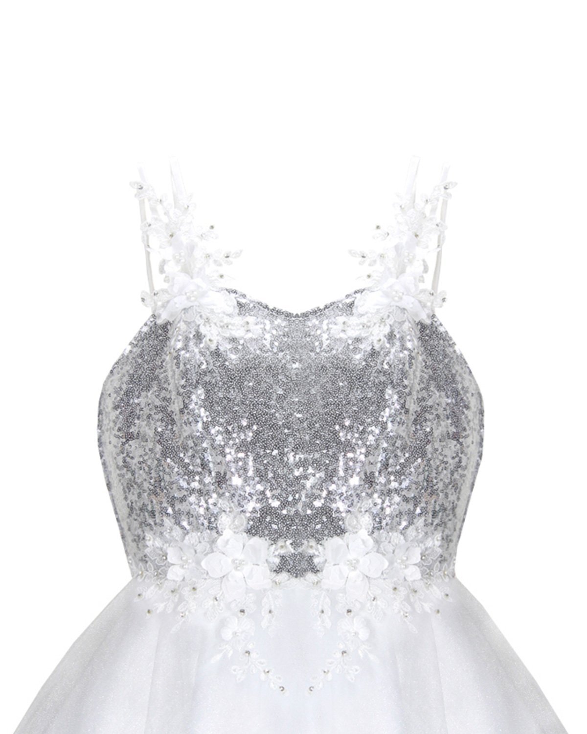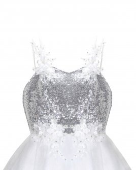 The Evelyn Style Confirmation Dress is a masterpiece of elegance and style, crafted from high-quality French taffeta and adorned with shimmering sequins and 3D flower appliqués to enhance its beauty and ensure your teenager stands out on that special day.