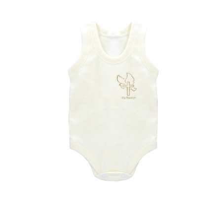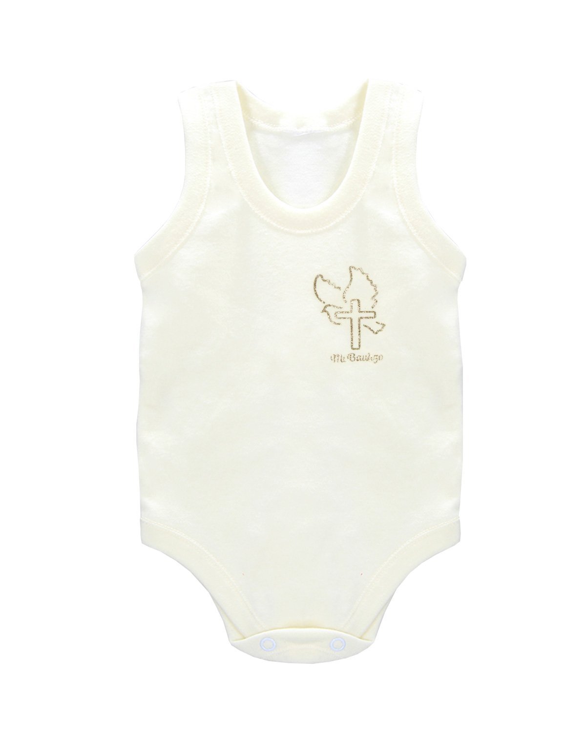 Strap onesie for boys with "My Baptism" logo. Elegant and comfortable, ideal for the baptism ceremony and commemorative photos.