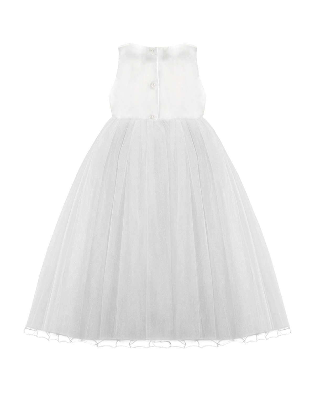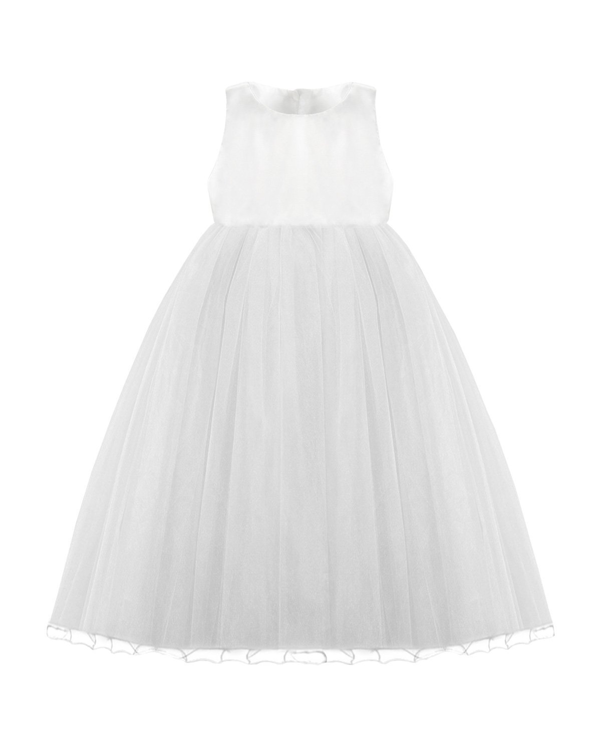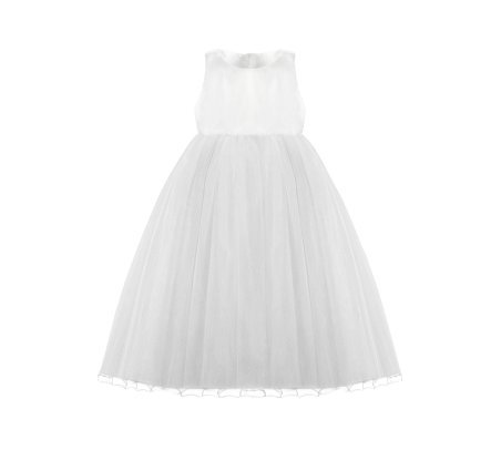100% polyester girl dress, tulle skirt, smooth taffeta blouse, back neckline