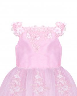 Elegant Girl's dress with embroidery and 3D flowers with pearls, tulle skirt and blouse with dropped sleeves.