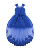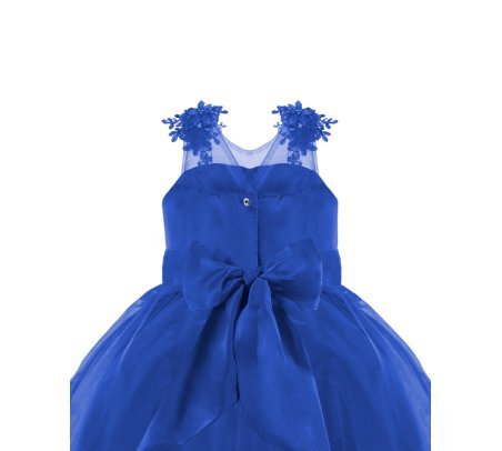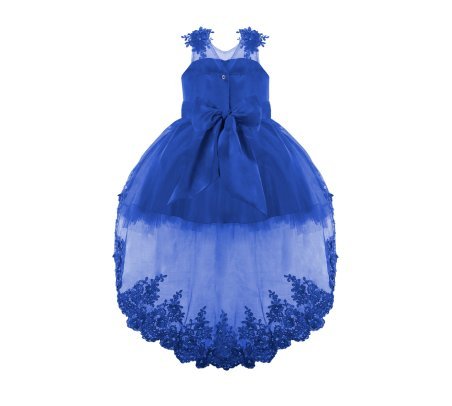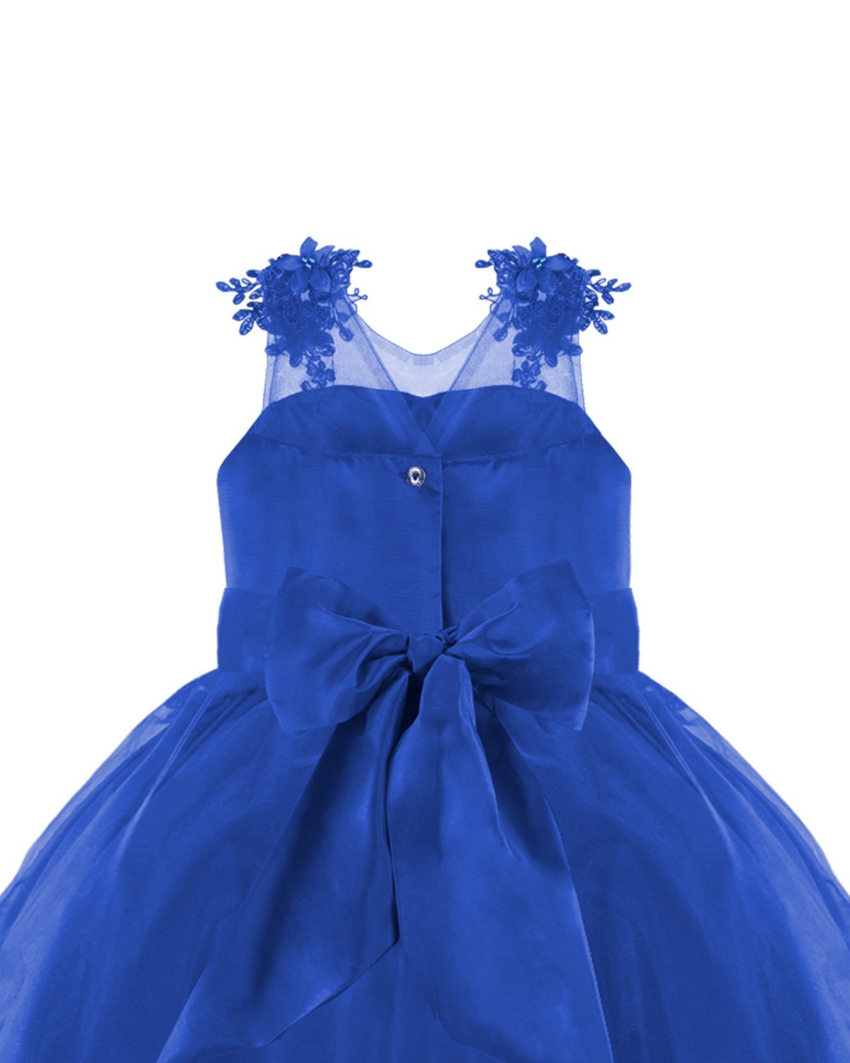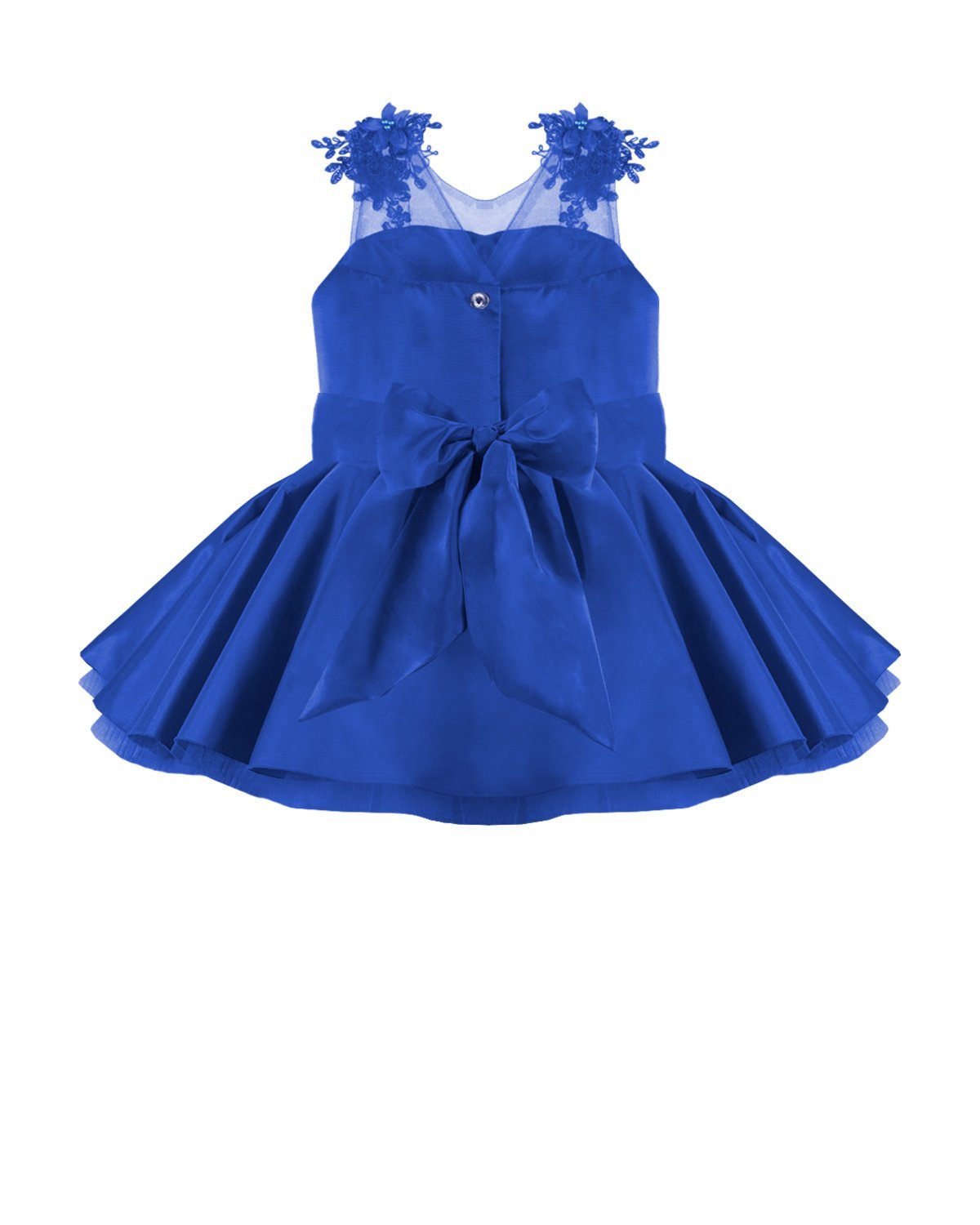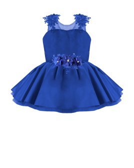 Girl's dress elegant short tulle and taffeta skirt with appliqués of embroidered flowers with a 3D finish, pearls and crystal stones with detachable tail and embroidery designs.