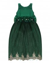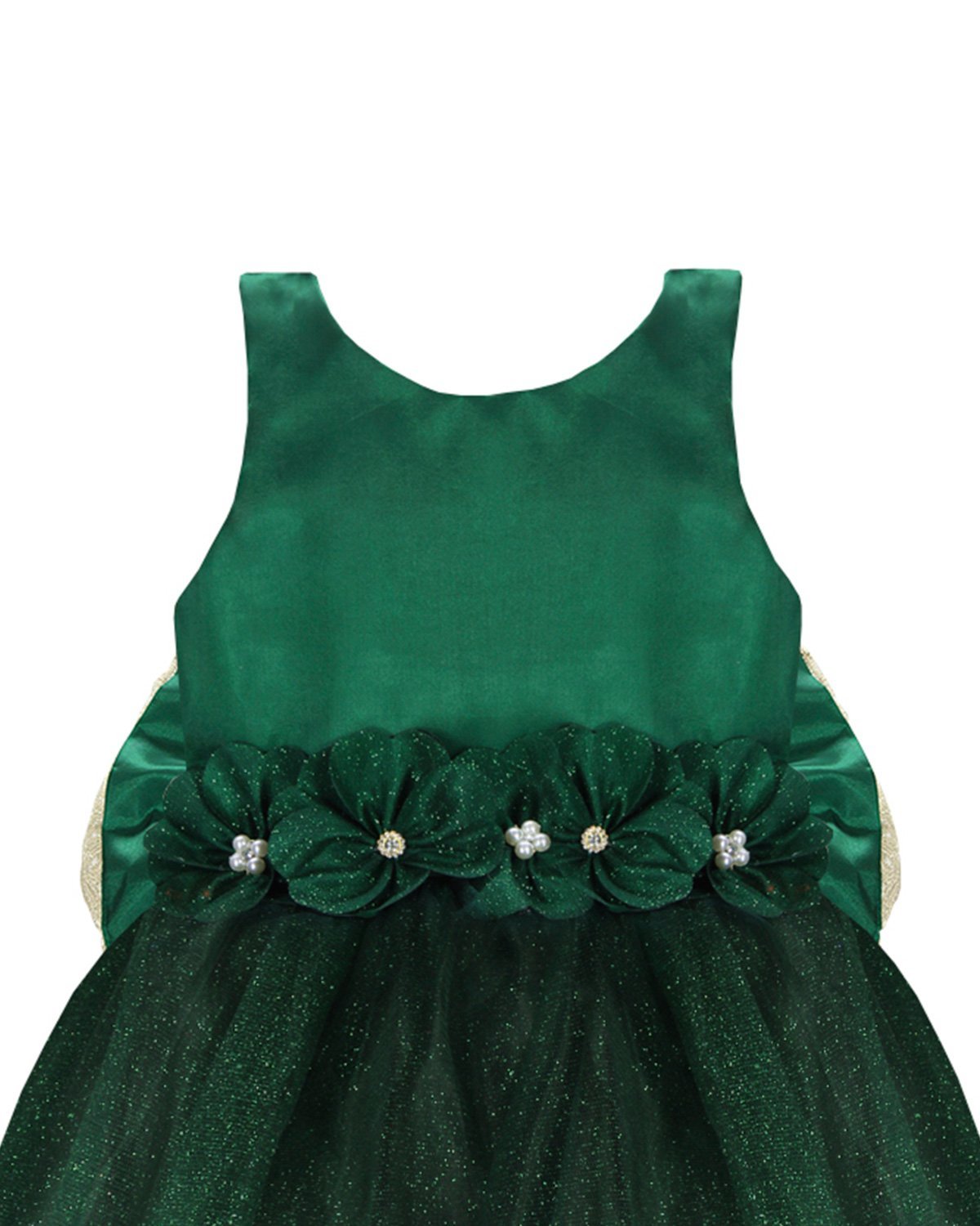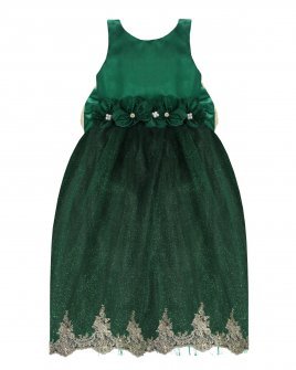 Beautiful girl's dress, tulle skirt with embroidery, sequin blouse and a flower decoration with a bow on the back.