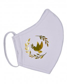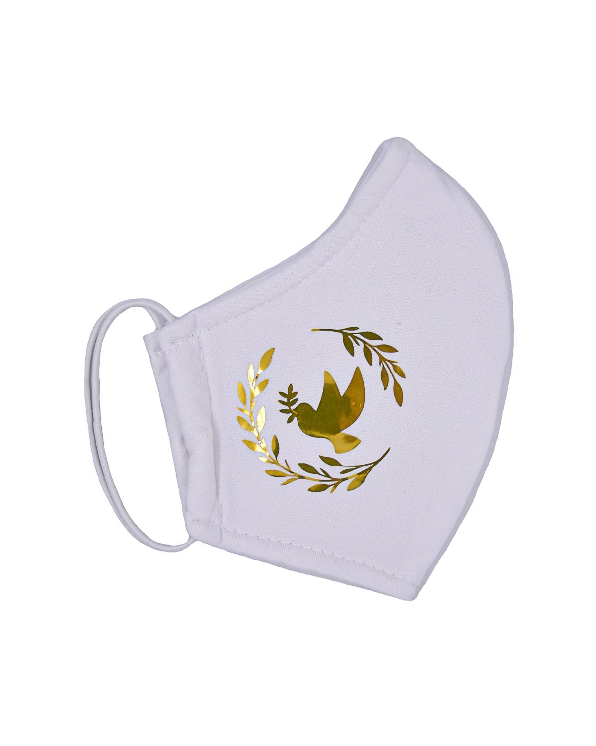 Diana First Communion Face Mask: decorated with a delicate sublimation of a dove surrounded by leaf guides, symbolizing peace and purity for a special day.