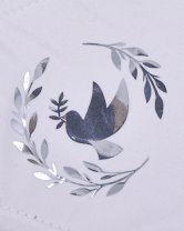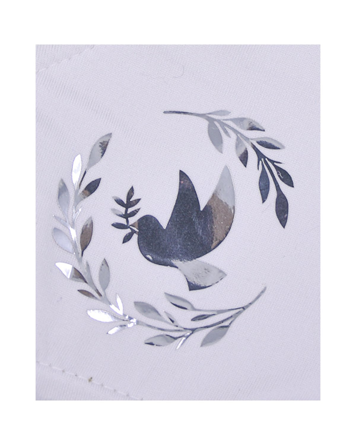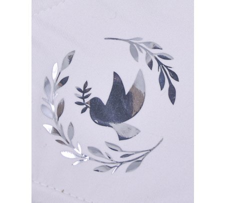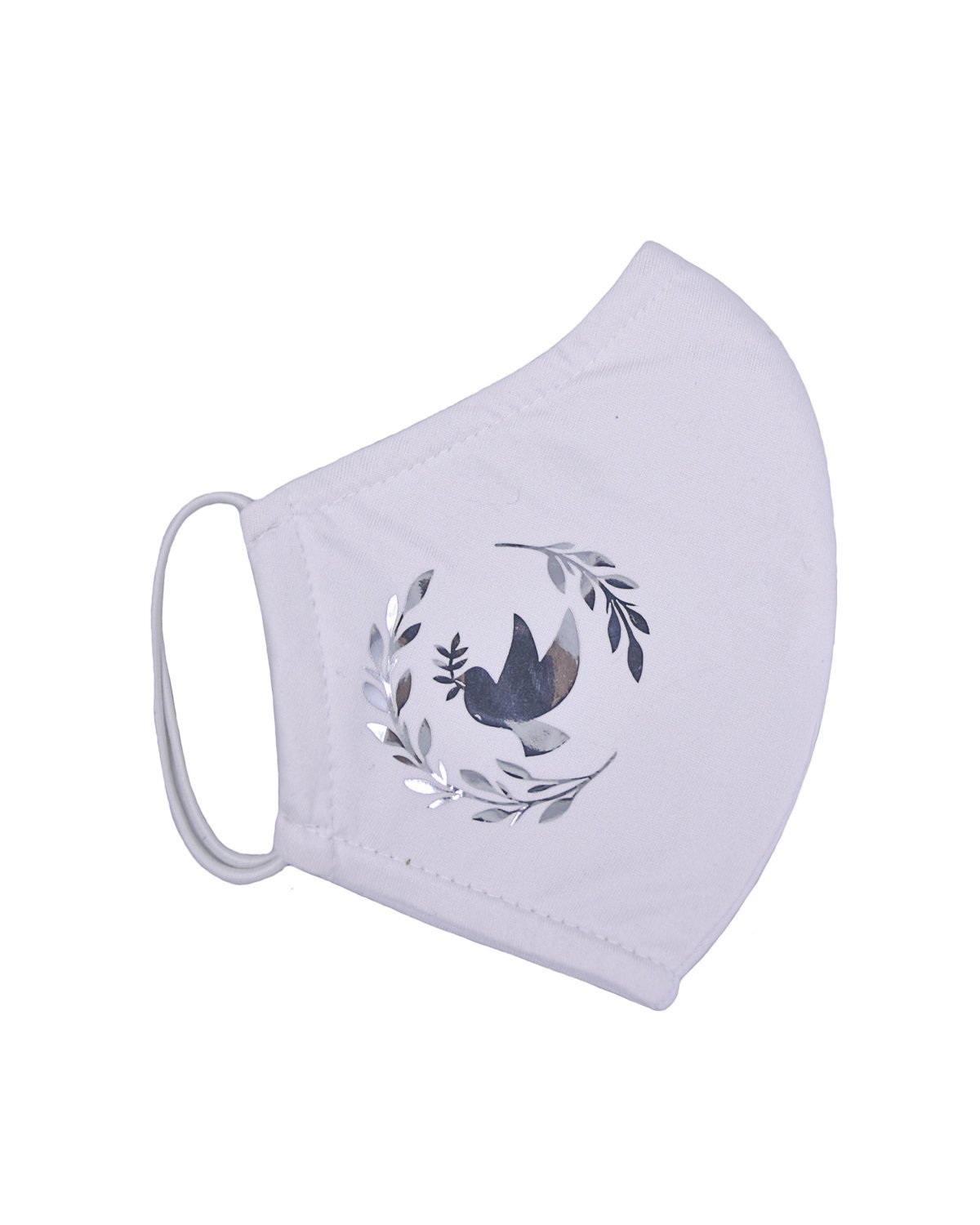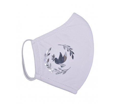 Diana First Communion Face Mask: decorated with a delicate sublimation of a dove surrounded by leaf guides, symbolizing peace and purity for a special day.