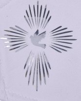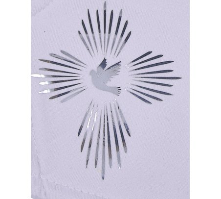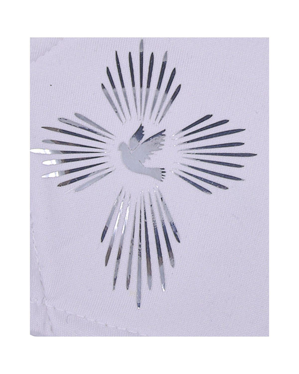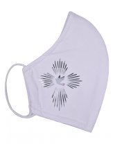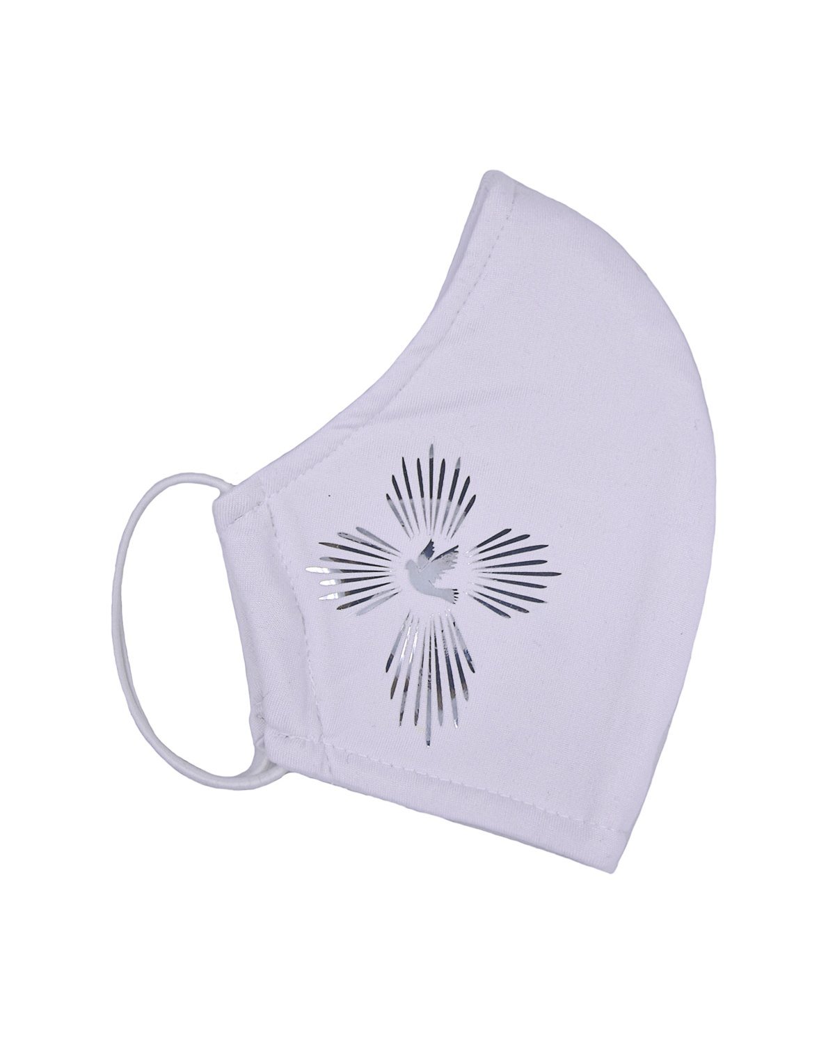 Gael First Communion Face Mask: decorated with an elegant sublimation of a cross with rays and a dove at the center, symbolizing light and peace for a special day.