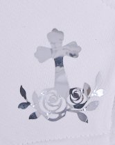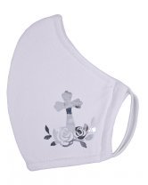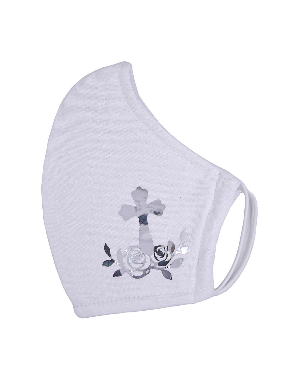 Roxana First Communion Face Mask: decorated with a sublimation of a cross with a leaf garland, perfect for an elegant and devotional touch on a special day.
