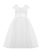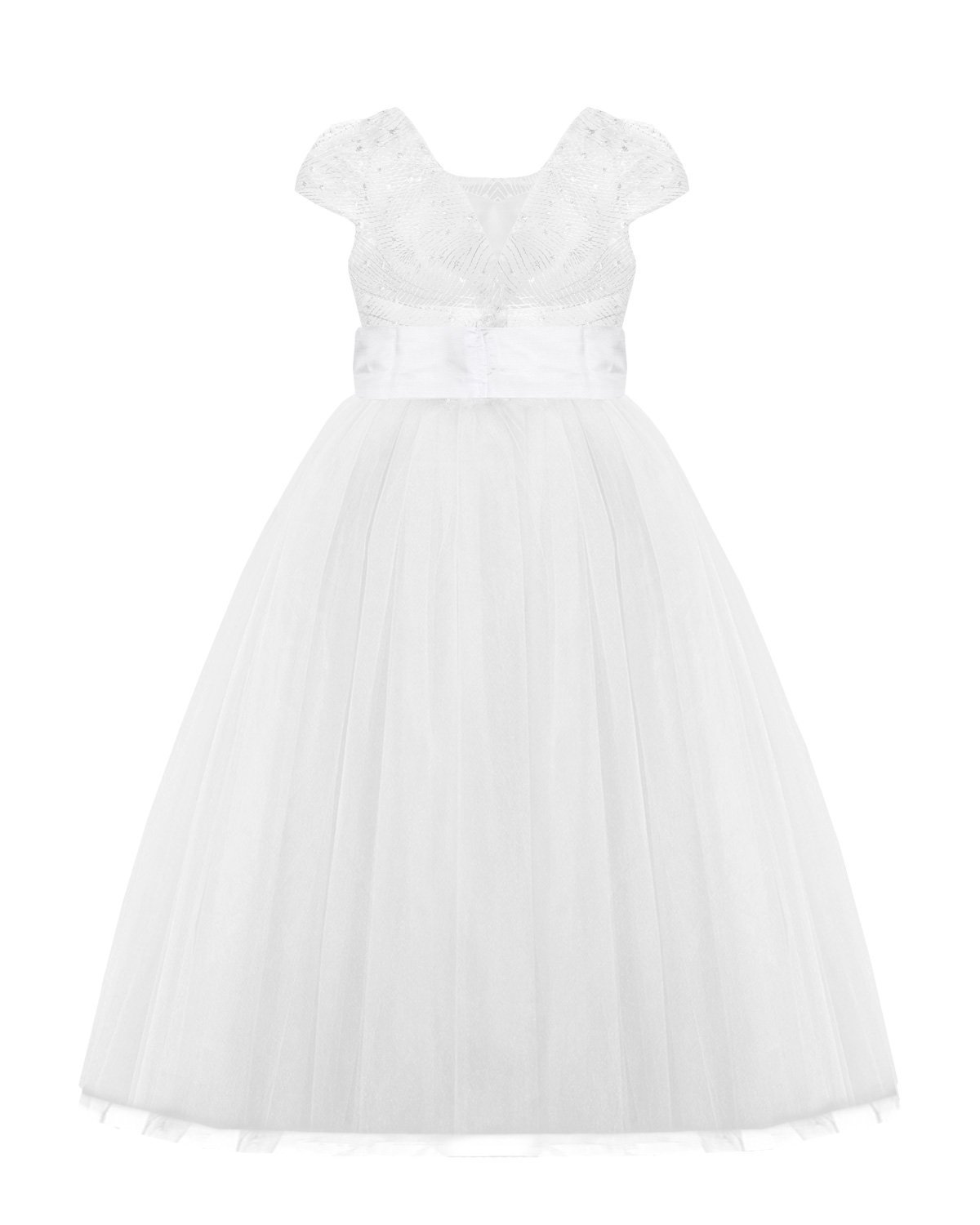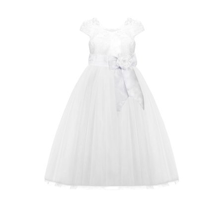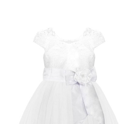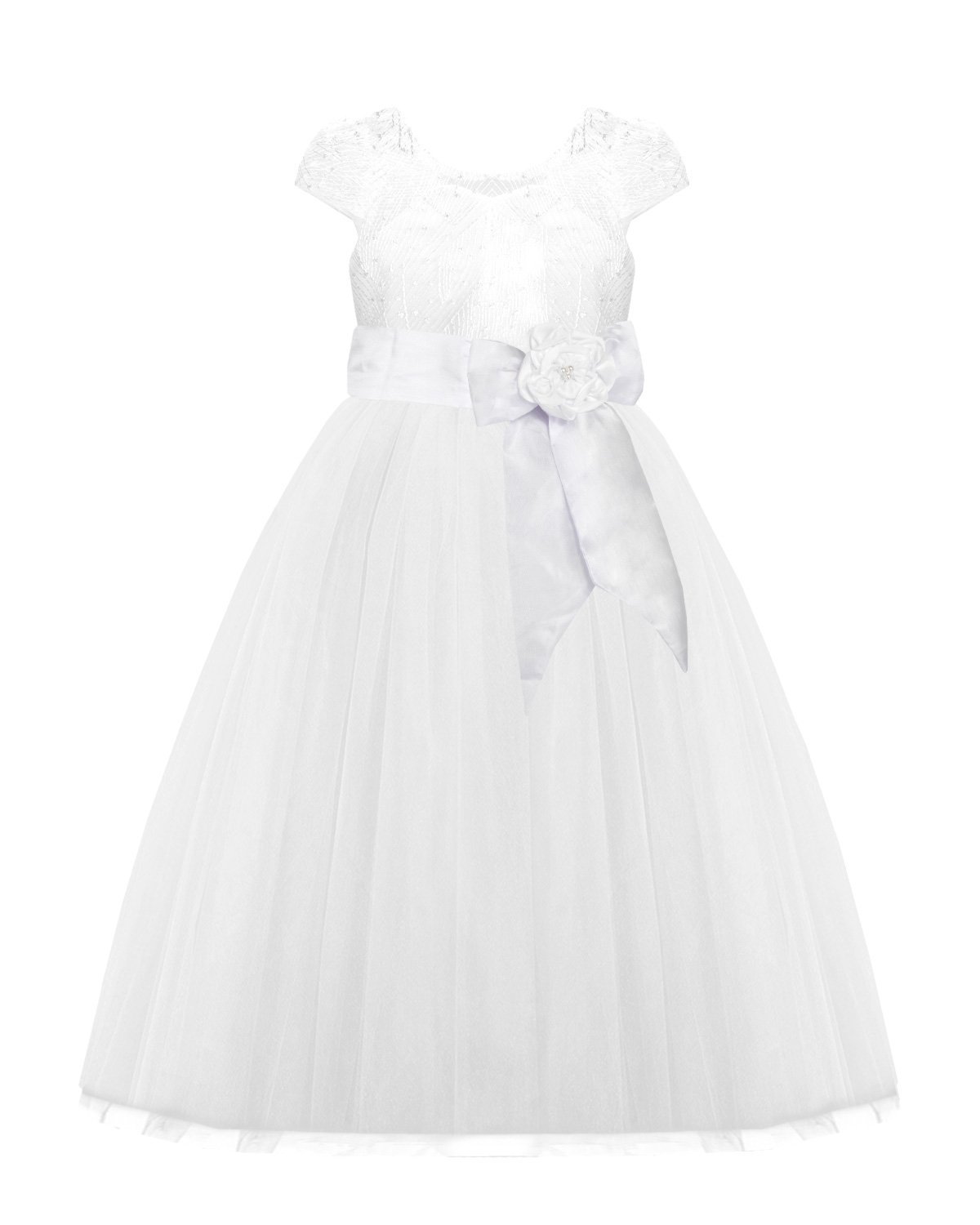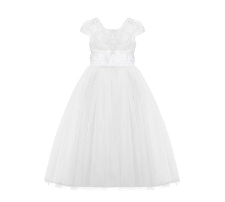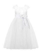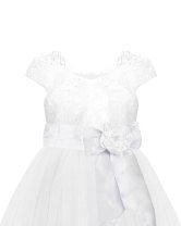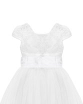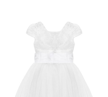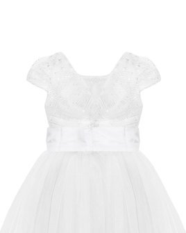 The Maylin first communion dress for a girl is an elegant and exclusive option for such a special occasion. Made with high-quality materials, including lining and soft veil, this dress ensures a soft and comfortable feel. The bodice is made of delicate lace and features flower-shaped embellishment, adding a distinctive and elegant touch to this beautiful dress.