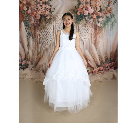 This first communion dress for a girl is a unique and elegant choice for such a special day.