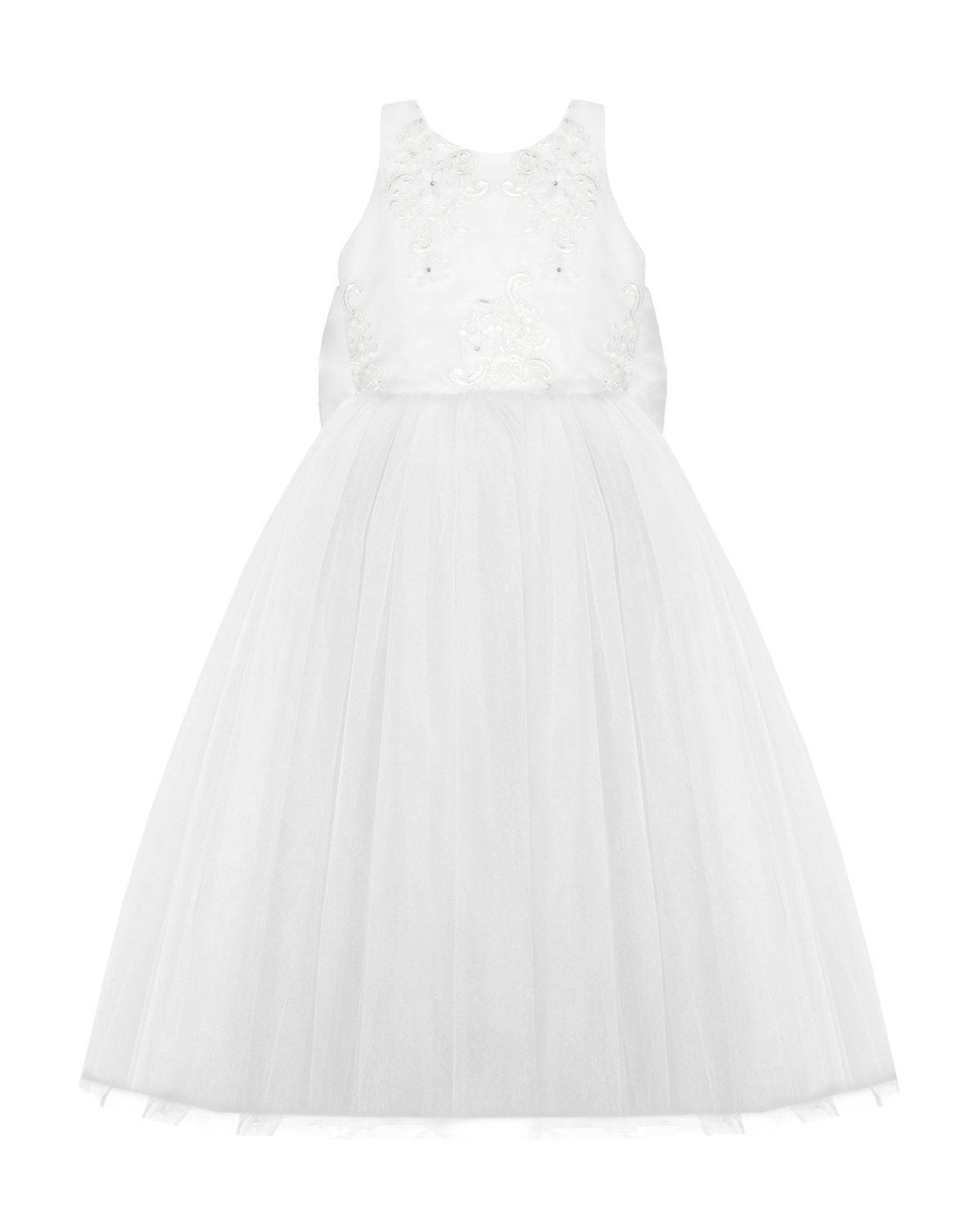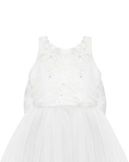 The Maylin first communion dress for a girl is an elegant and delicate option for such a special occasion. Its lining and soft veil construction, together with its embroidered tulle bodice and unique details, ensure a comfortable and elegant feeling. The bow at the back adds a distinctive touch to this dress.