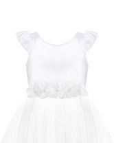 This first communion dress for girls is crafted from a shimmering glitter lining and veil with a quality taffeta bodice. It has a flower ornament that makes it look even more beautiful. This dress is part of our Maylin brand, known for its style and quality.