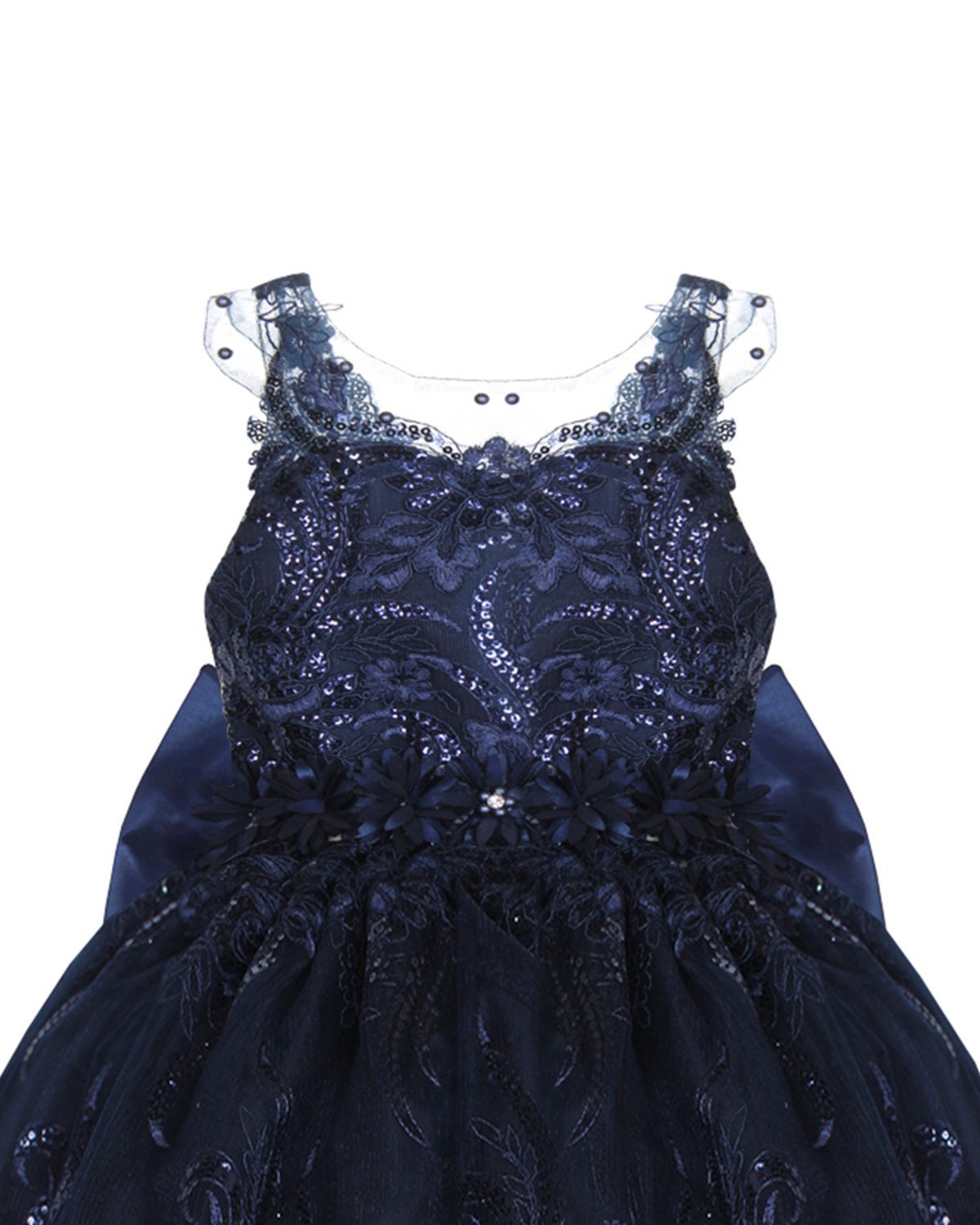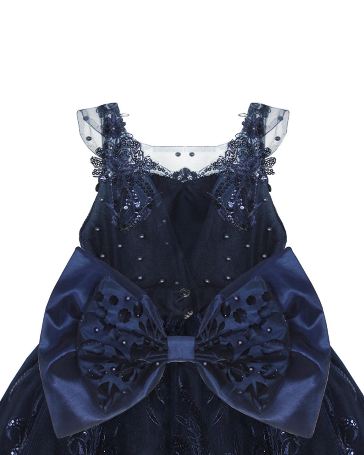 This party dress for girls from the Maylin brand is made with lining, veil and sequin embroidery. The dress is beautifully embellished with pearls and crystals for a touch of elegance. Ideal for any special occasion, the quality and style of the brand guarantee that your little girl will be the center of attention.
