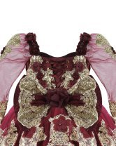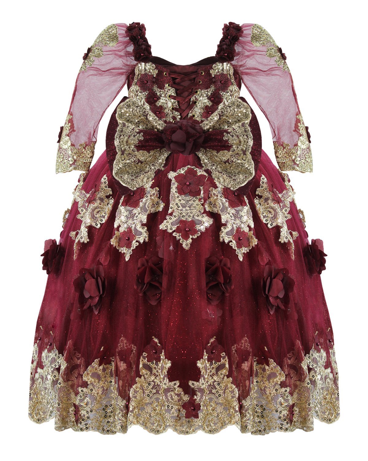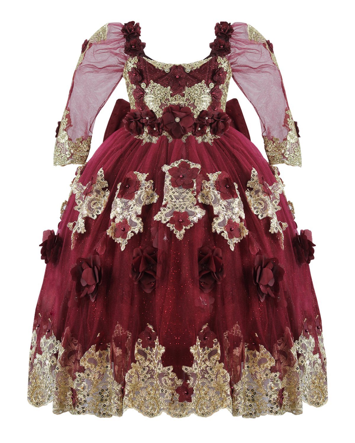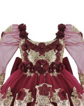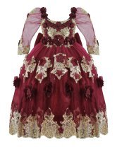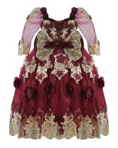 Elevate your child's style with this stunning party dress. Made from top-notch materials for comfort, it features golden appliqués for a luxurious touch and 3D embroidery on the sleeves. The 3D floral finish adds a princess-like charm, making it the perfect dress for any special occasion.