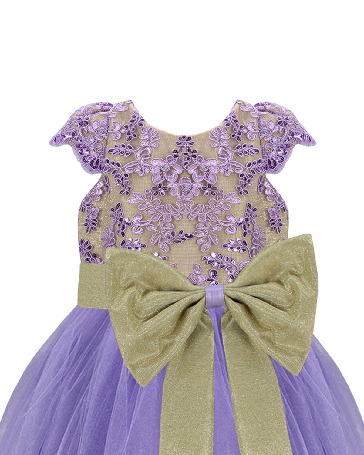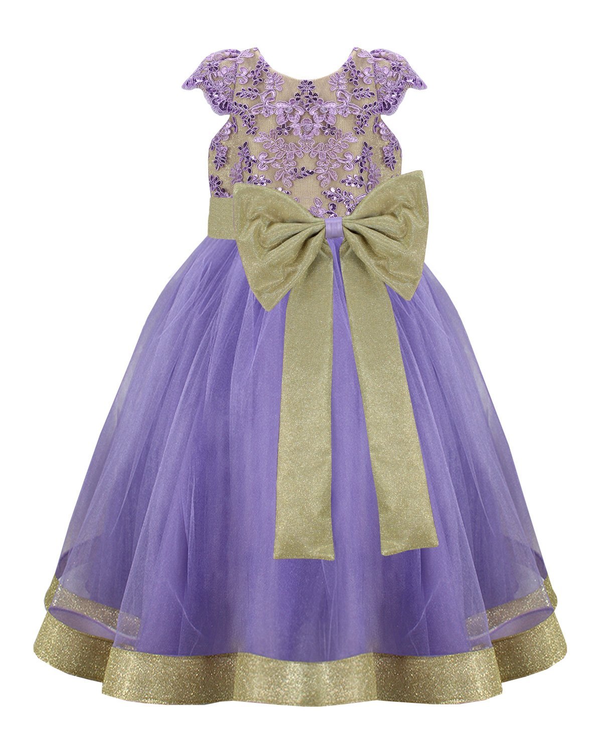 The Dinora Girl's Dress Model shines with its elegance and charm. Crafted in glitter fabric with delicate embroidery, it features an adjustable bow at the waist and a skirt with multiple layers of tulle and a strip of glitter fabric at the hem, creating a stunning look for any special occasion.