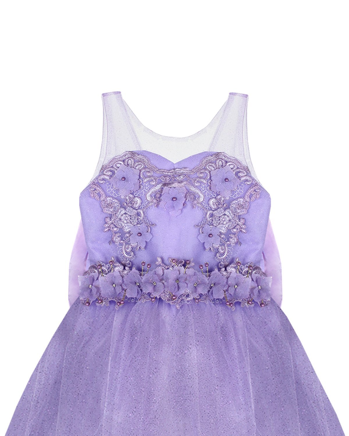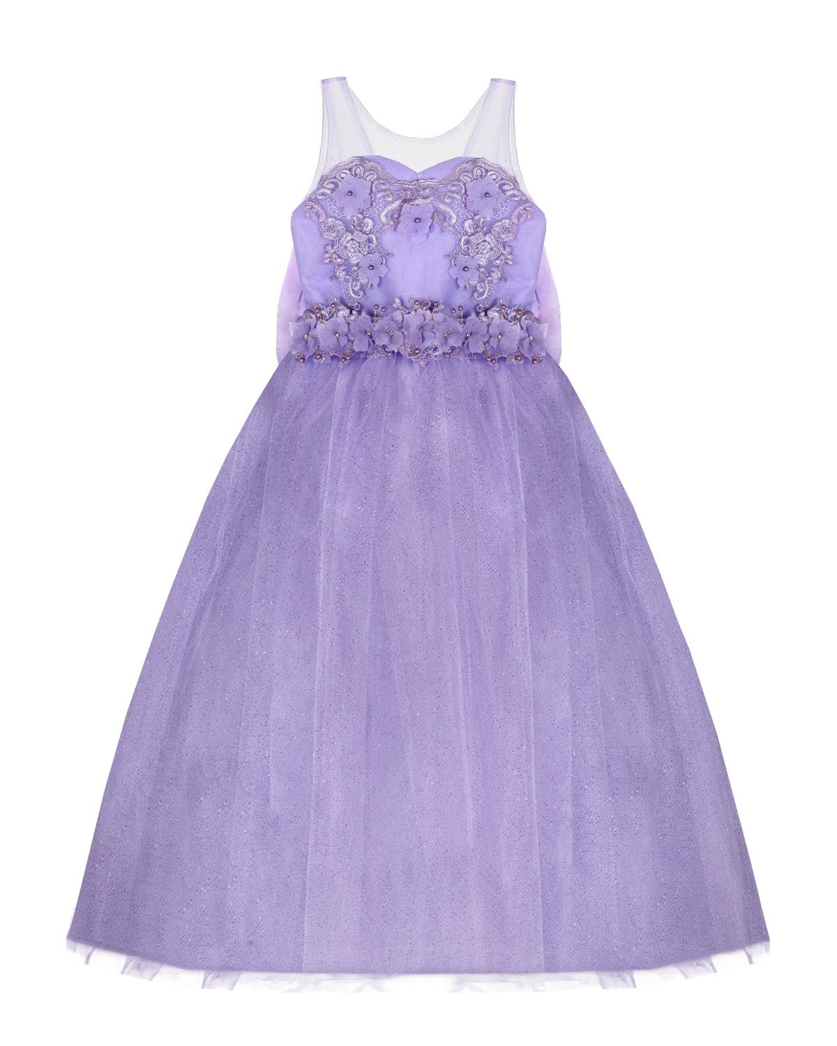 Elegant girl's dress with sequin embroidery, 3D flower details with rhinestones beading, detachable Glittel skirt and Glittel tulle skirt with double bow decoration at the waist. Two dresses in one.