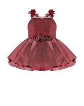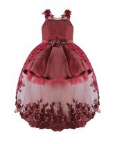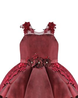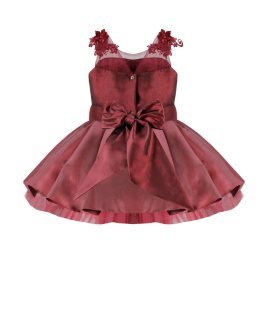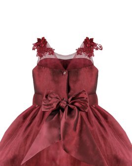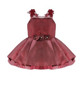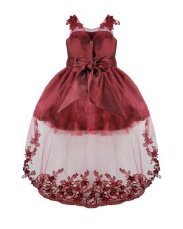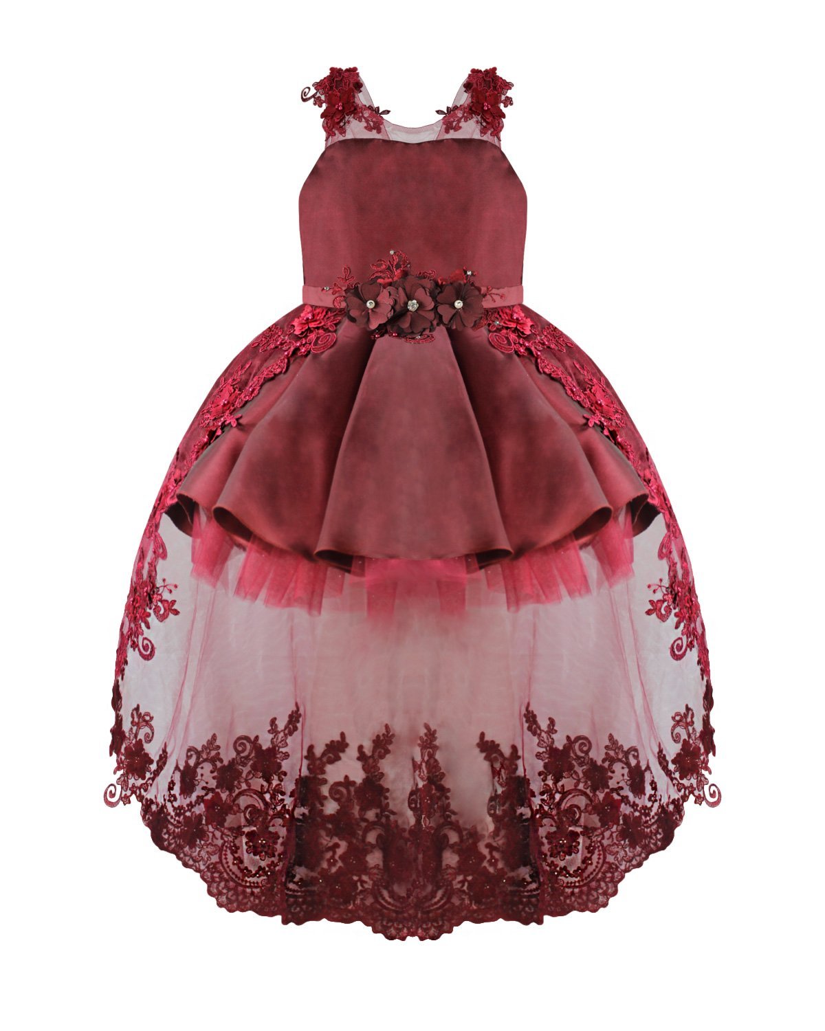 Girl's dress elegant short tulle and taffeta skirt with appliqués of embroidered flowers with a 3D finish, pearls and rhinestones stones with detachable tail and embroidery designs.