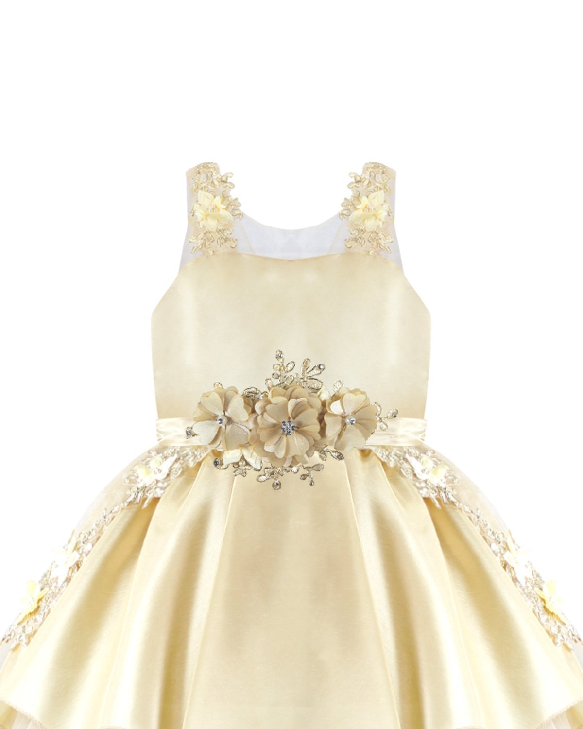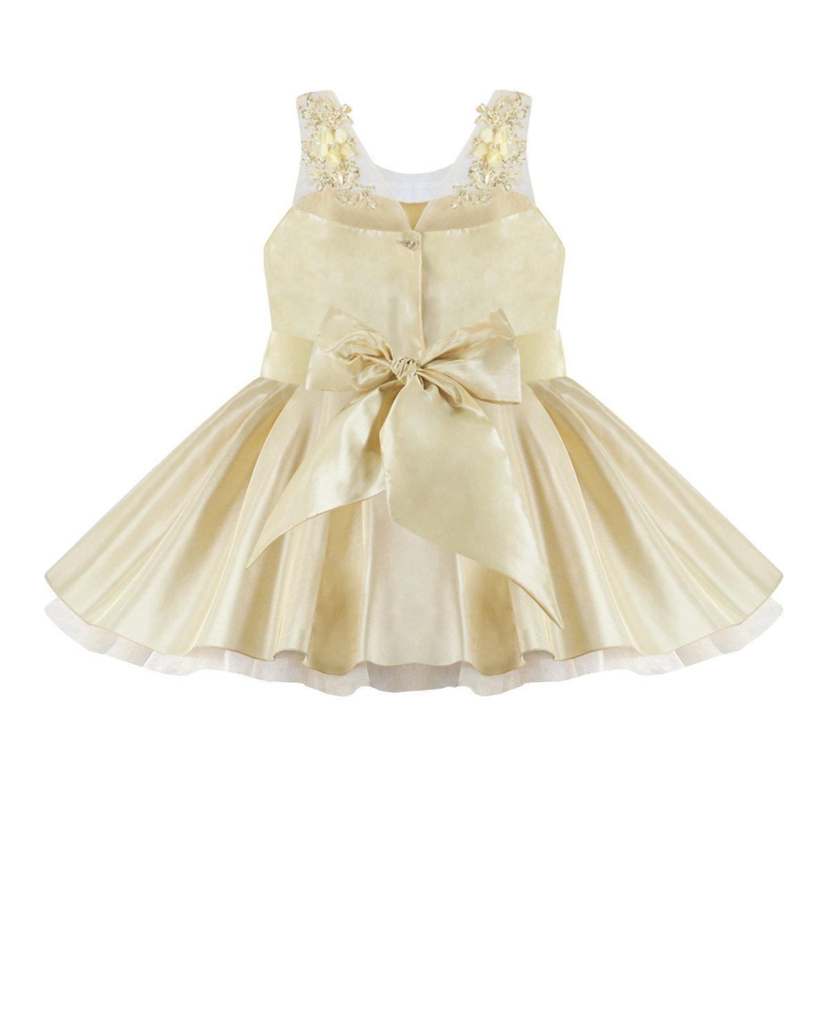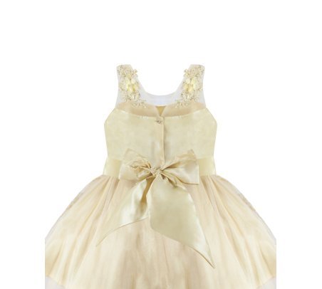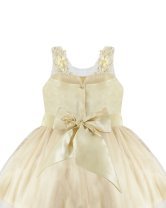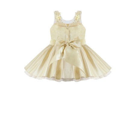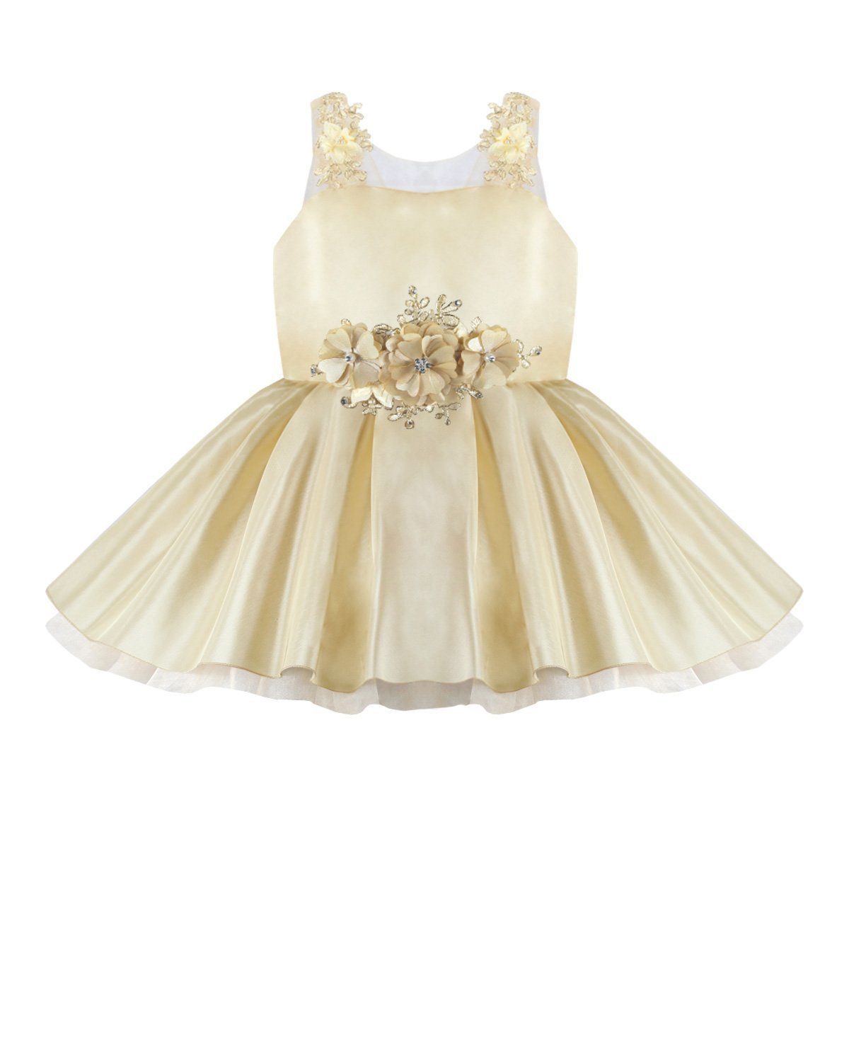 Girl's dress elegant short tulle and taffeta skirt with appliqués of embroidered flowers with a 3D finish, pearls and rhinestones stones with detachable tail and embroidery designs.