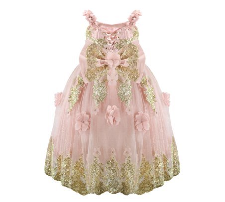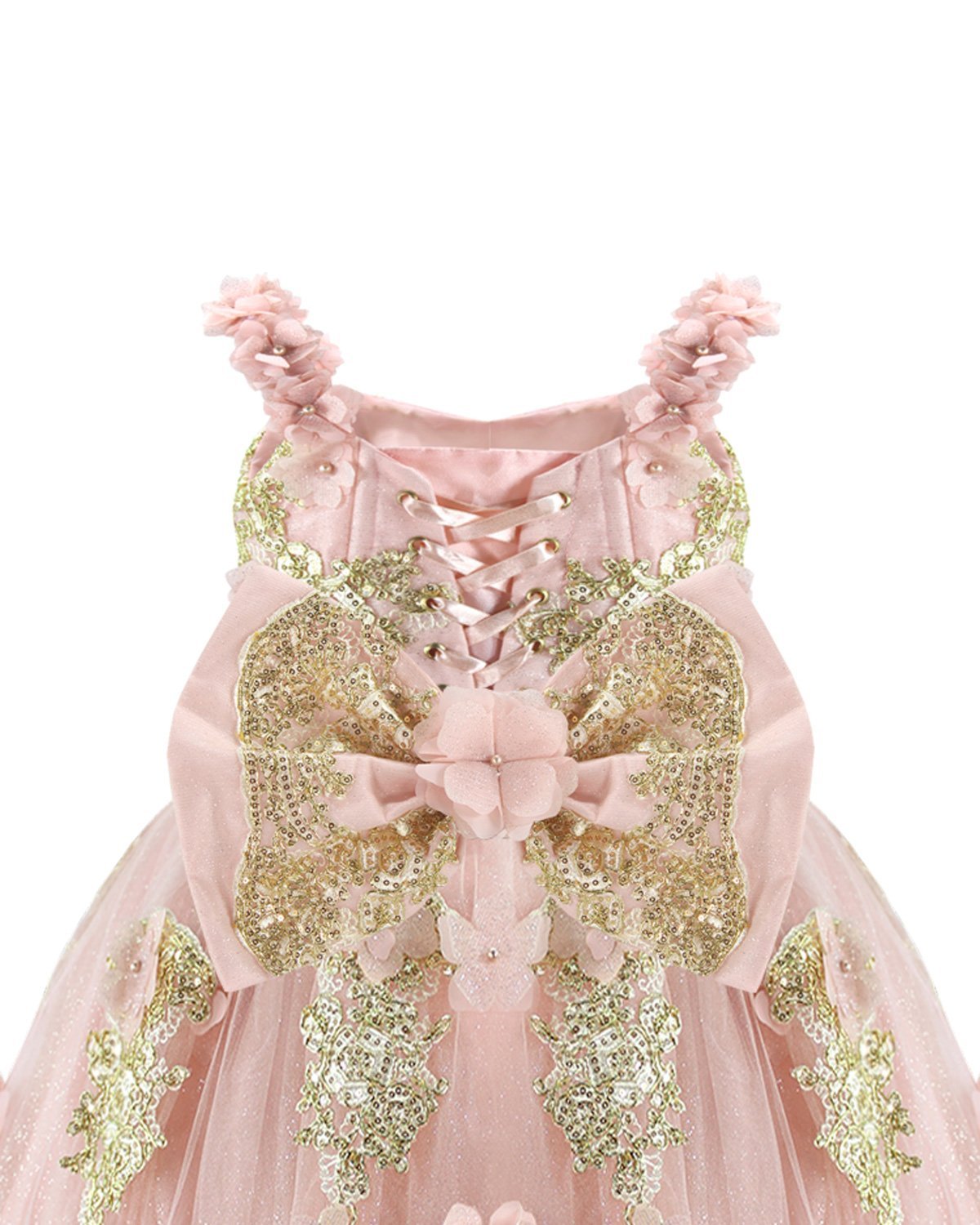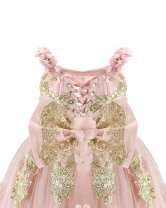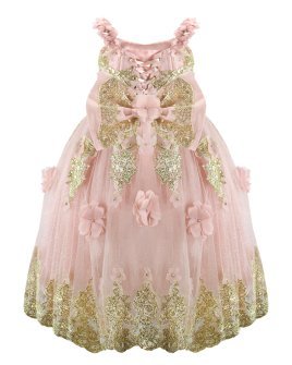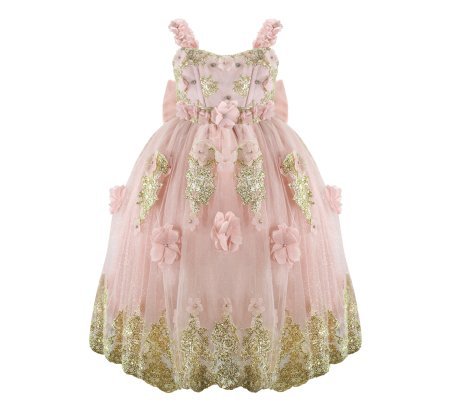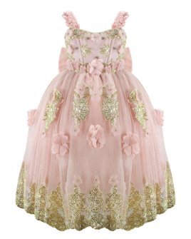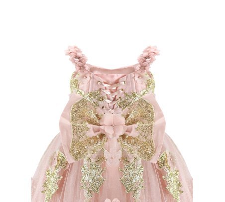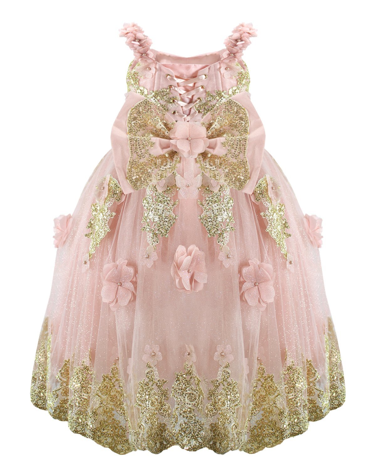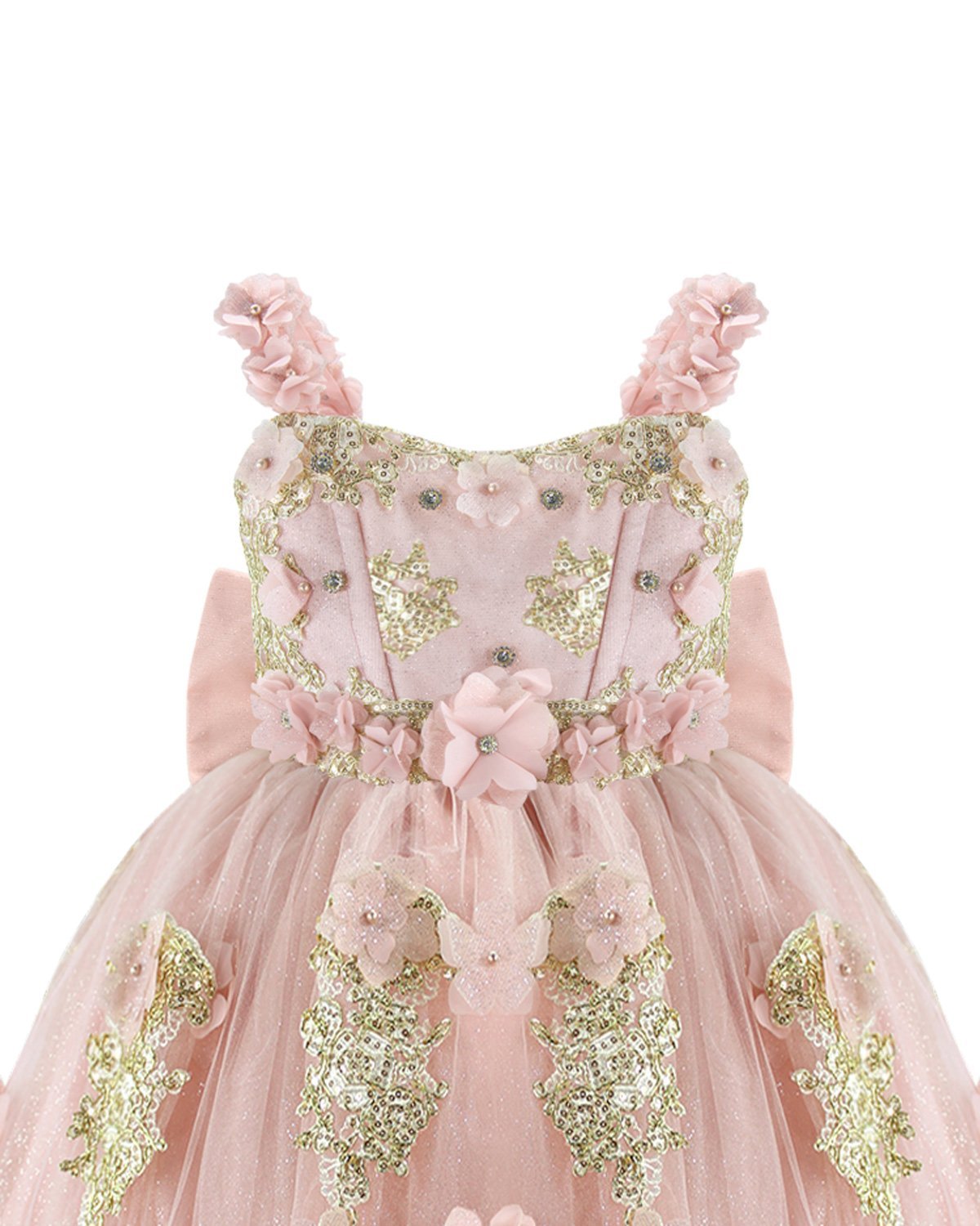 Off the shoulder corset dress, lined with Glittel and embroidery, with 3D flower details.