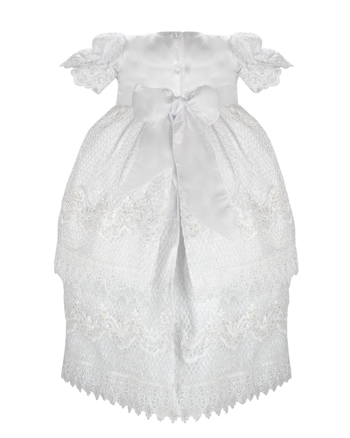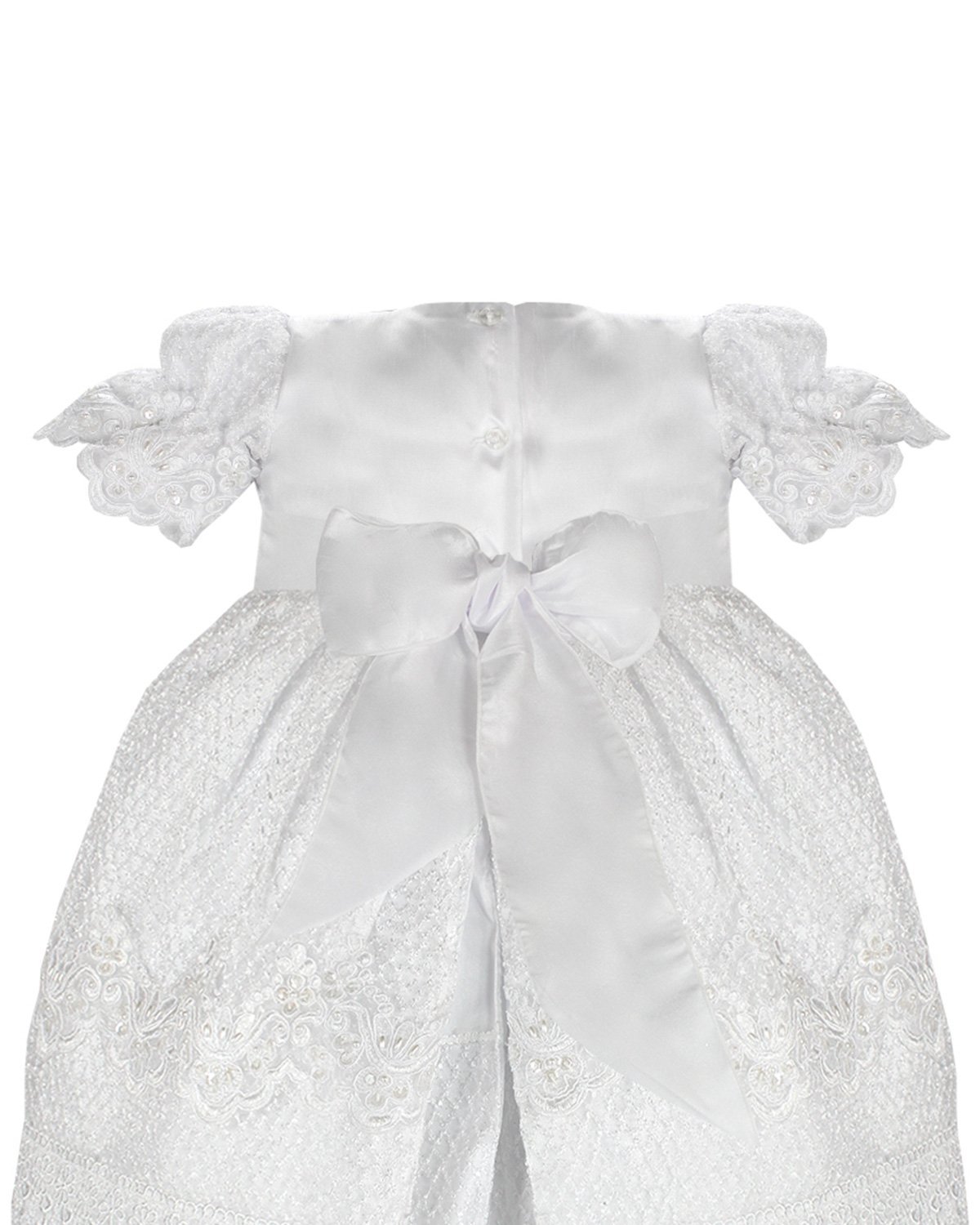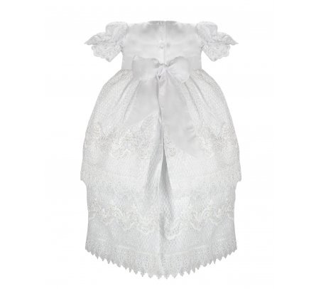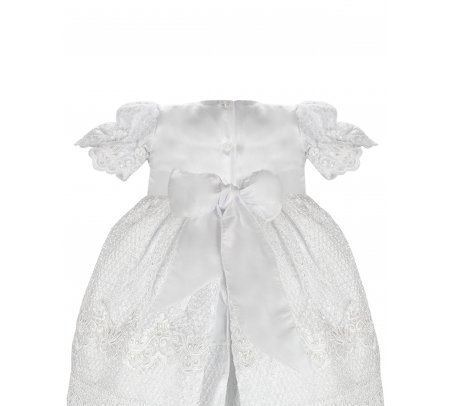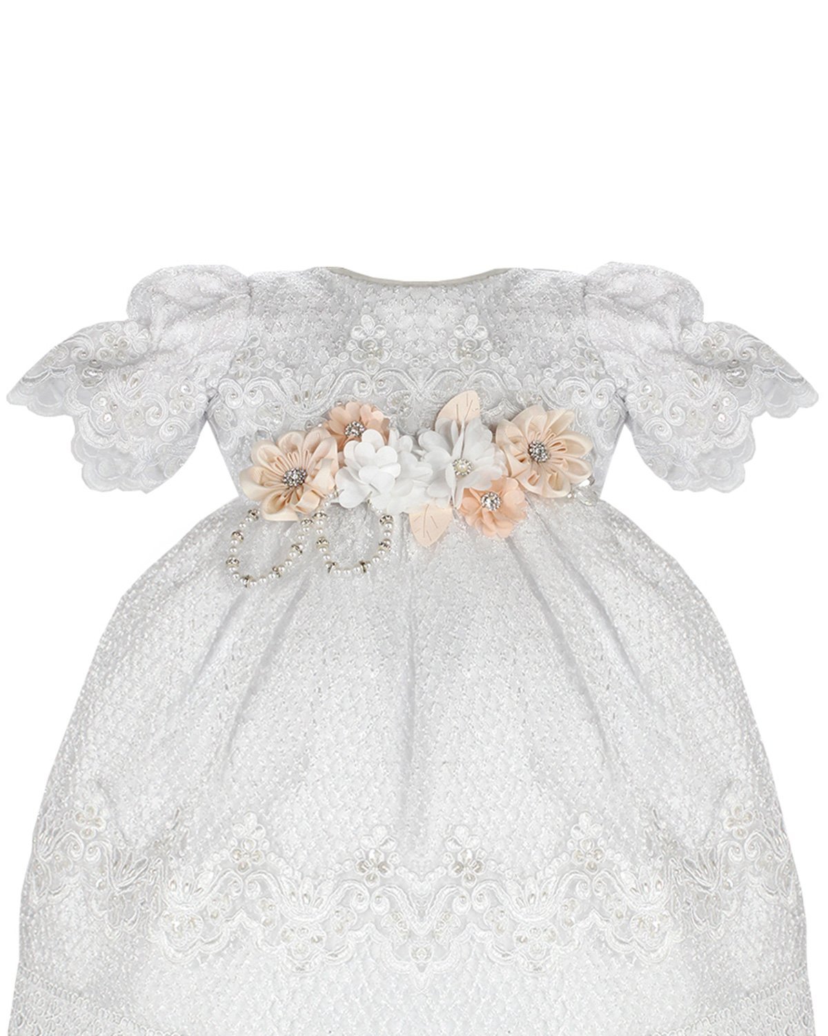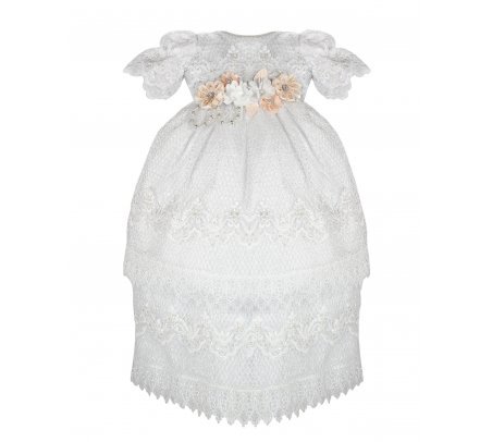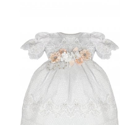 "Immerse yourself in the sublime beauty of the Daira Girl's Christening Gown, crafted from shantung and adorned with meticulous embroidery. Its details include 3D flowers, pearls, and rhinestones, making it an exceptional piece. The embroidered pearls add an extra touch of elegance, making this gown a perfect choice for any special occasion."