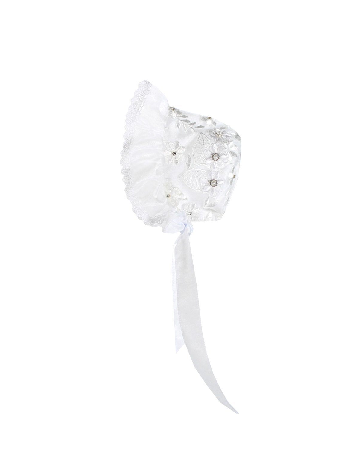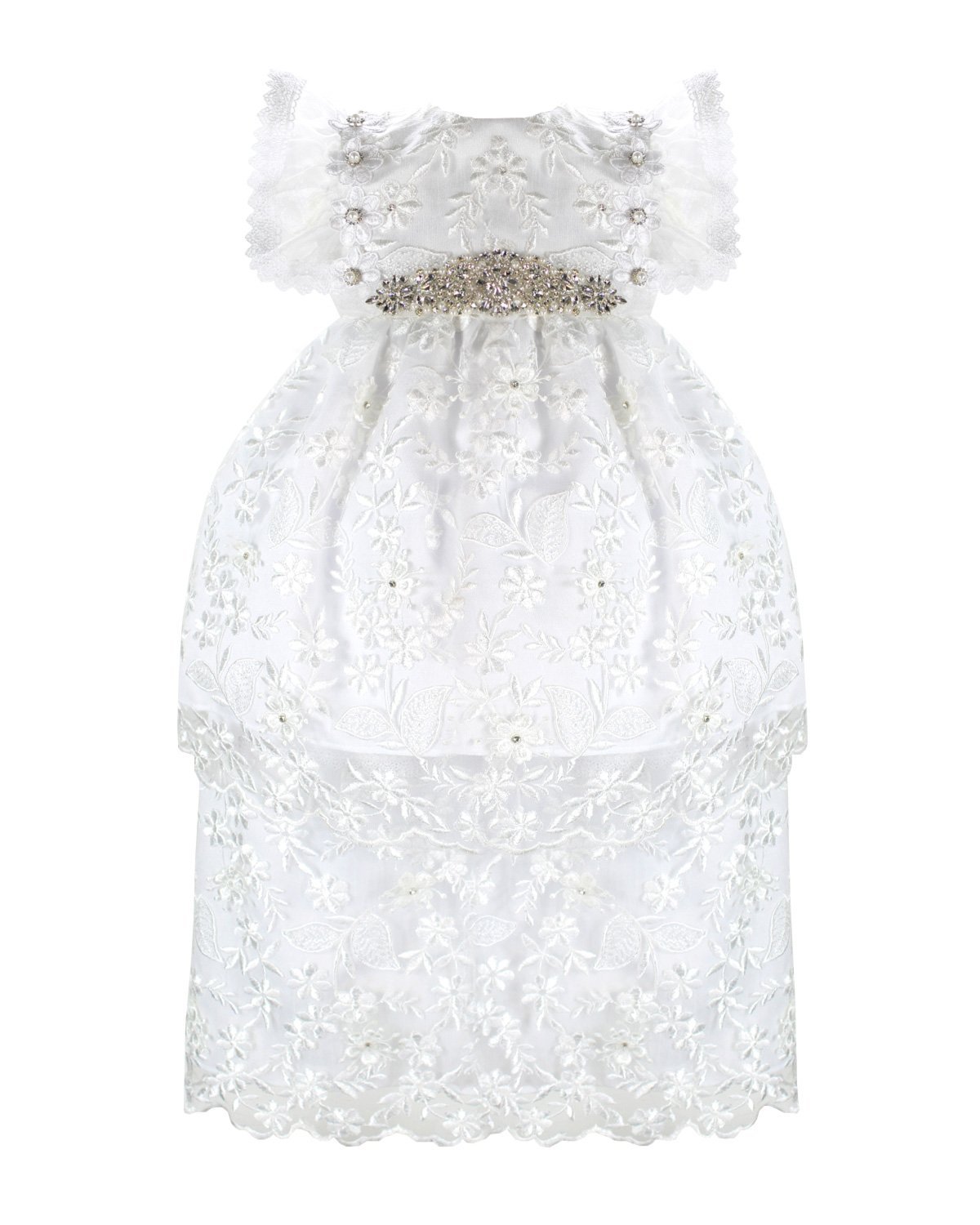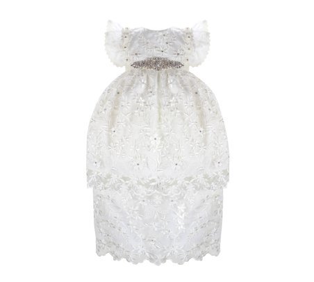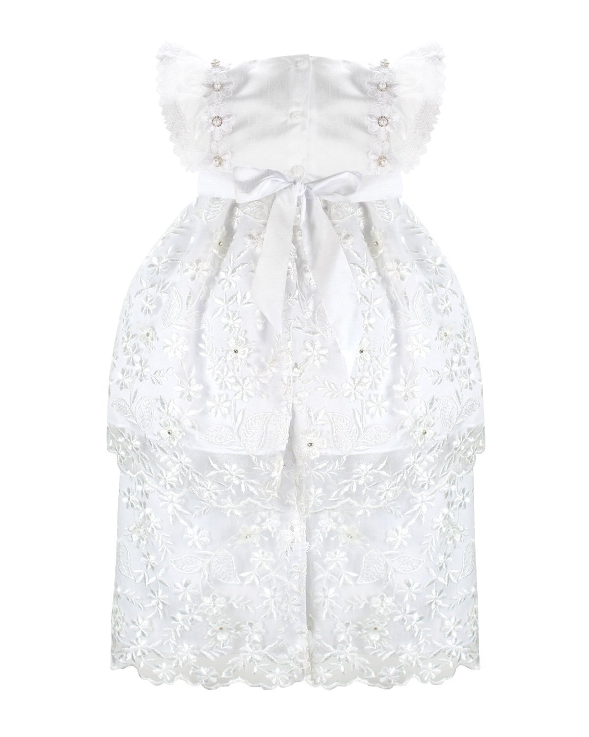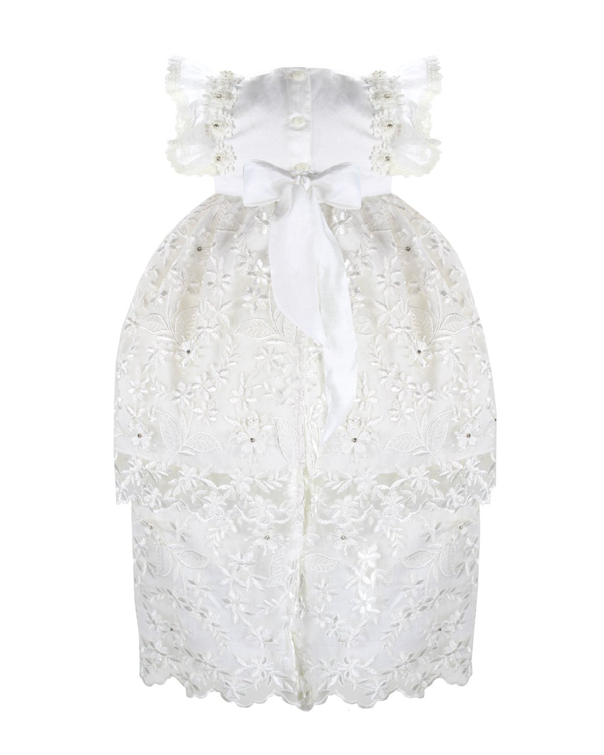 "Maylin's Mariel Girl's Gown is a dreamy piece that will capture all attention. Crafted in shantung, this gown features a blouse with 3D flower and scroll embroideries, enhanced with pearls and rhinestones at the center, sleeves with ruffles and edge embroidery, and a cluster of 3D flowers entirely crafted in zirconia. The skirt showcases exquisite 3D flower embroideries with zirconia centers for an additional touch of glamour. Complete with back buttons and a slightly slim adjustable bow, this gown is the perfect choice to stand out at any occasion."