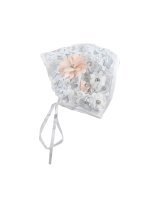 The Victoría baptism gown is a beautifully detailed piece crafted in fine shantung. It features a layer of embroidered tulle adorned with delicate 3D flowers. The front showcases elegant embroidery and a 3D floral embellishment with crystals and pearls. The gown includes soft lace sleeves and a matching lace bonnet also decorated with 3D flowers. A sophisticated and charming design, perfect for an unforgettable baptism ceremony.