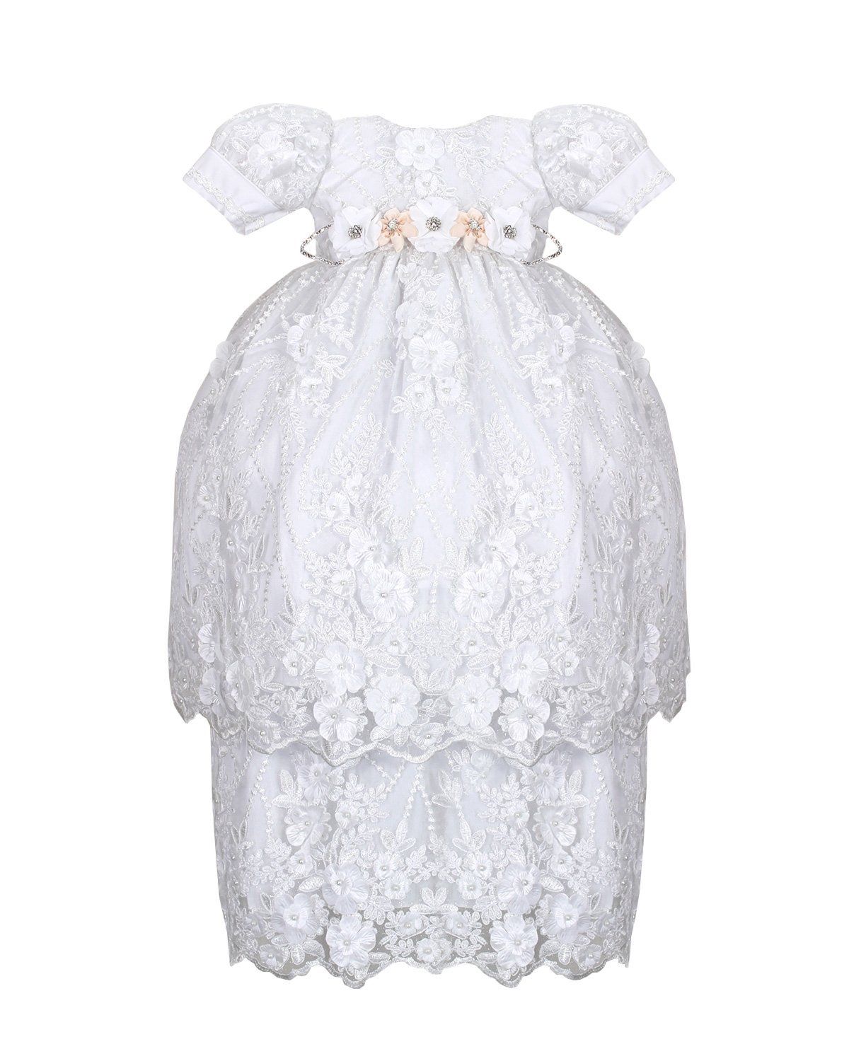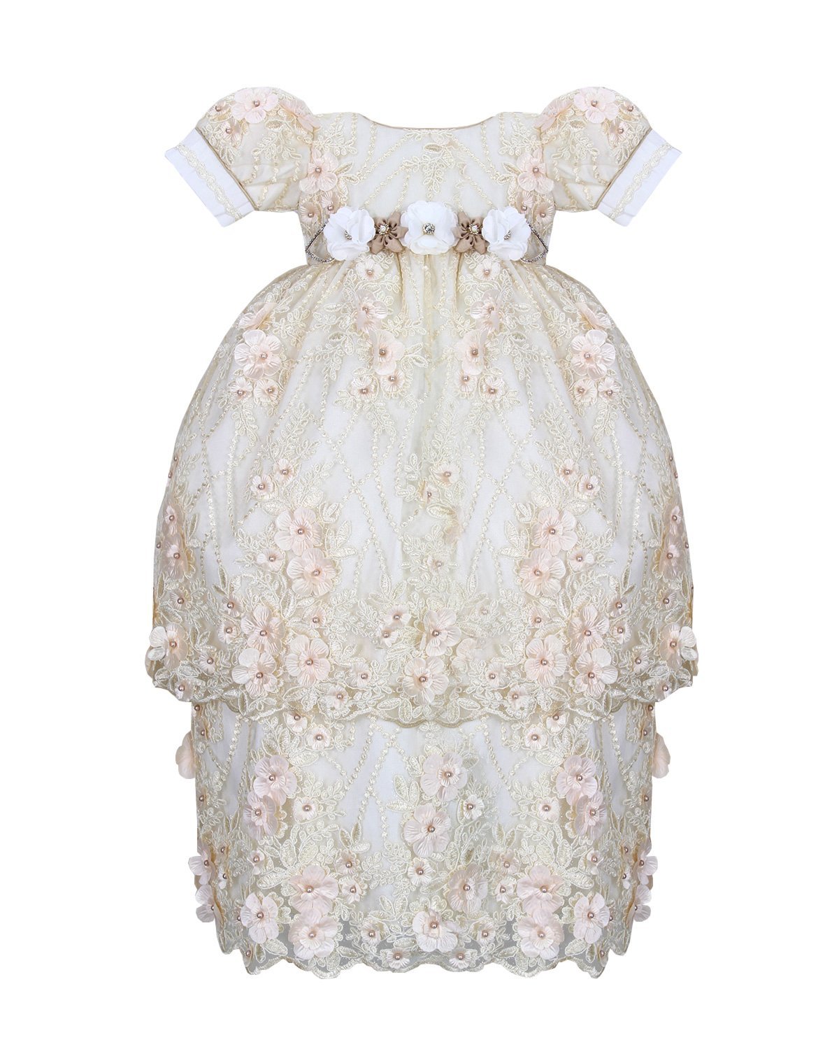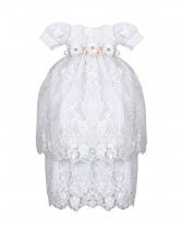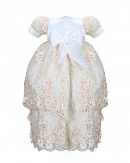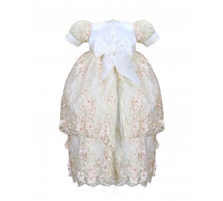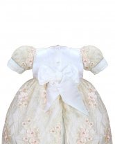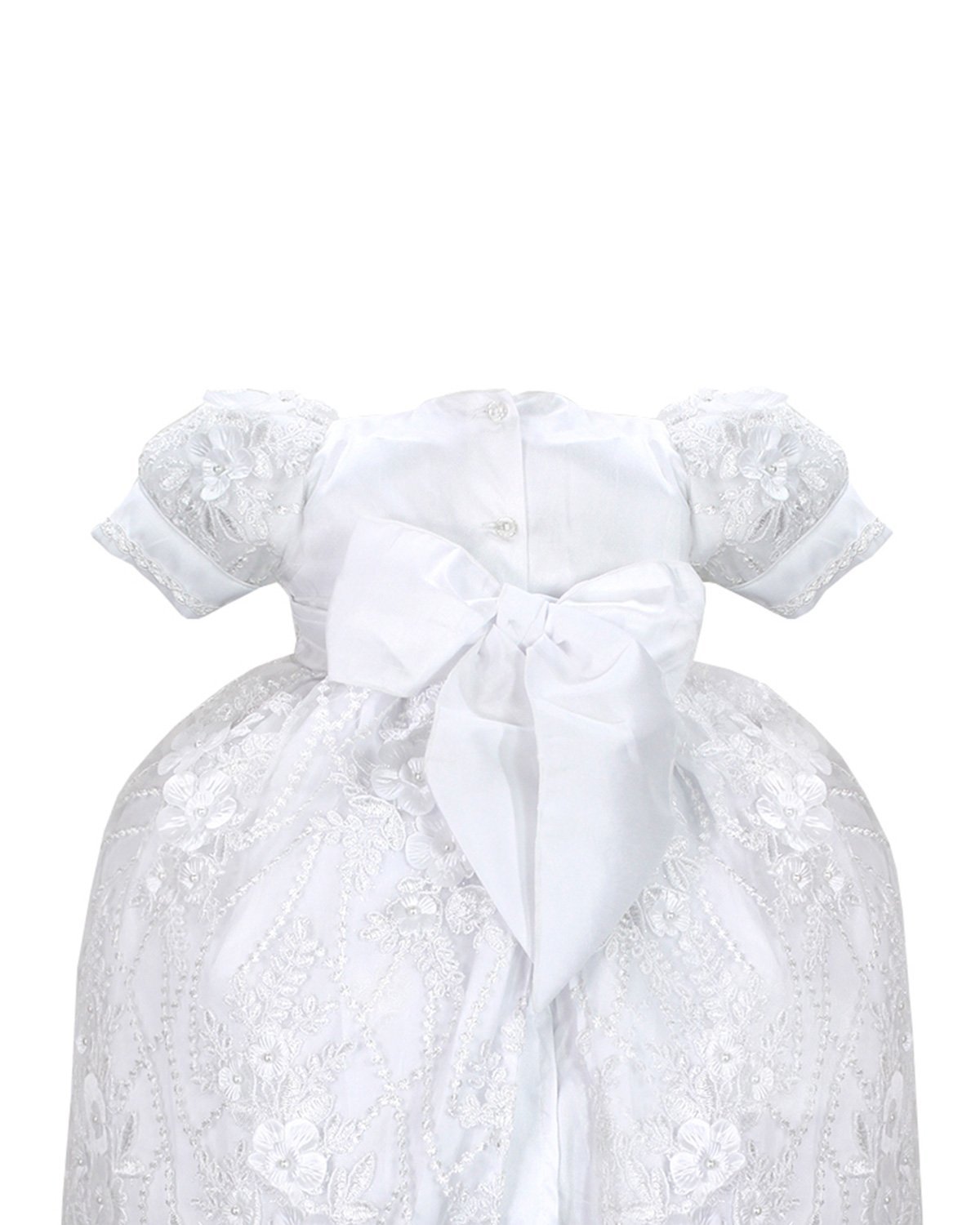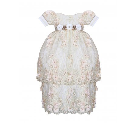 Discover the elegance and charm of the christening gown for girls from the exclusive Maylin brand. Made with delicate lining and embroidered floral print and 3D flower appliqué, this dress stands out for its elegant tones and princess-style sleeves, creating a sophisticated and adorable look for the special day of your baptism.