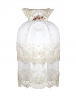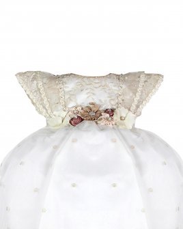 This spectacular christening gown for a girl is made of high-quality shantung in a beautiful khaki hue. It has sleeves embellished with lace and beading, which gives it an elegant and sophisticated touch. On the front it has a delicate ornament in soft colors that makes it even more charming. This robe is from our only brand Maylin, which guarantees its quality and exclusivity.No customer reviews for the moment.