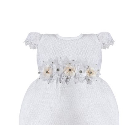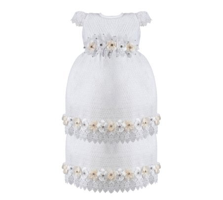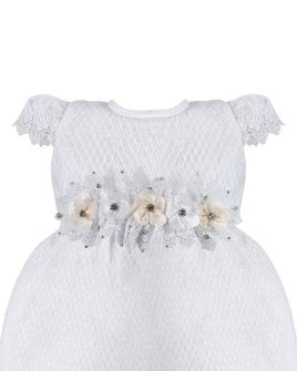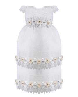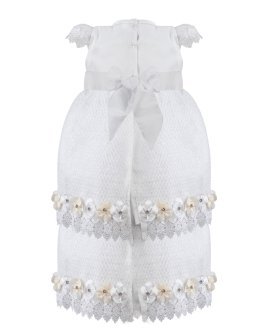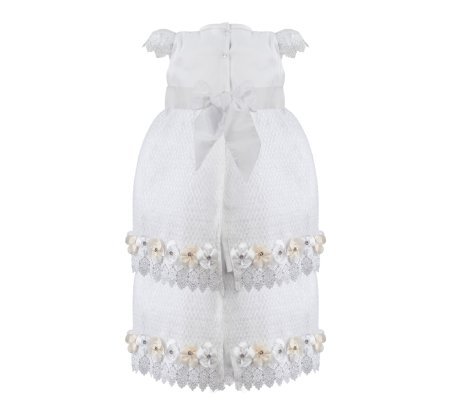 This baptism gown for a girl is a perfect choice for such a special day. Made of high-quality shantung and with unique lace details that add an elegant touch to the design, this dress is embellished with two layers of soft-toned flowers, making it truly unique. The Maylin brand made sure that every detail was perfect to make this christening gown truly special.