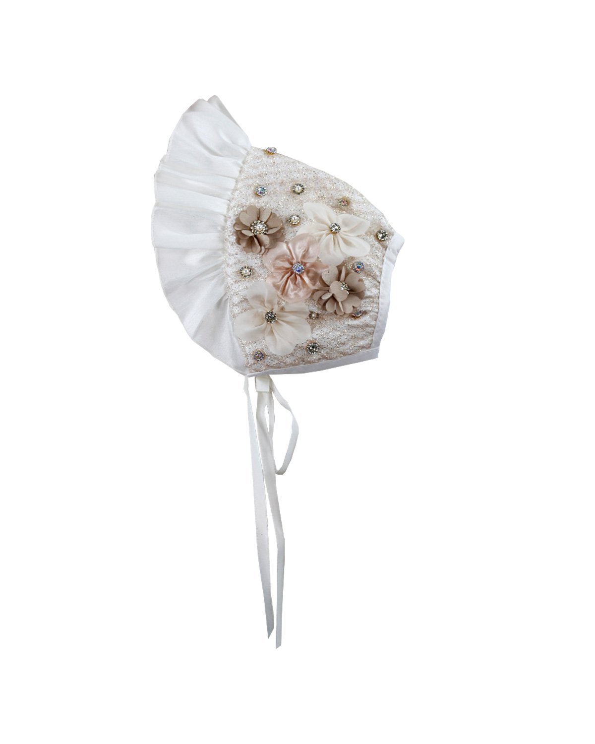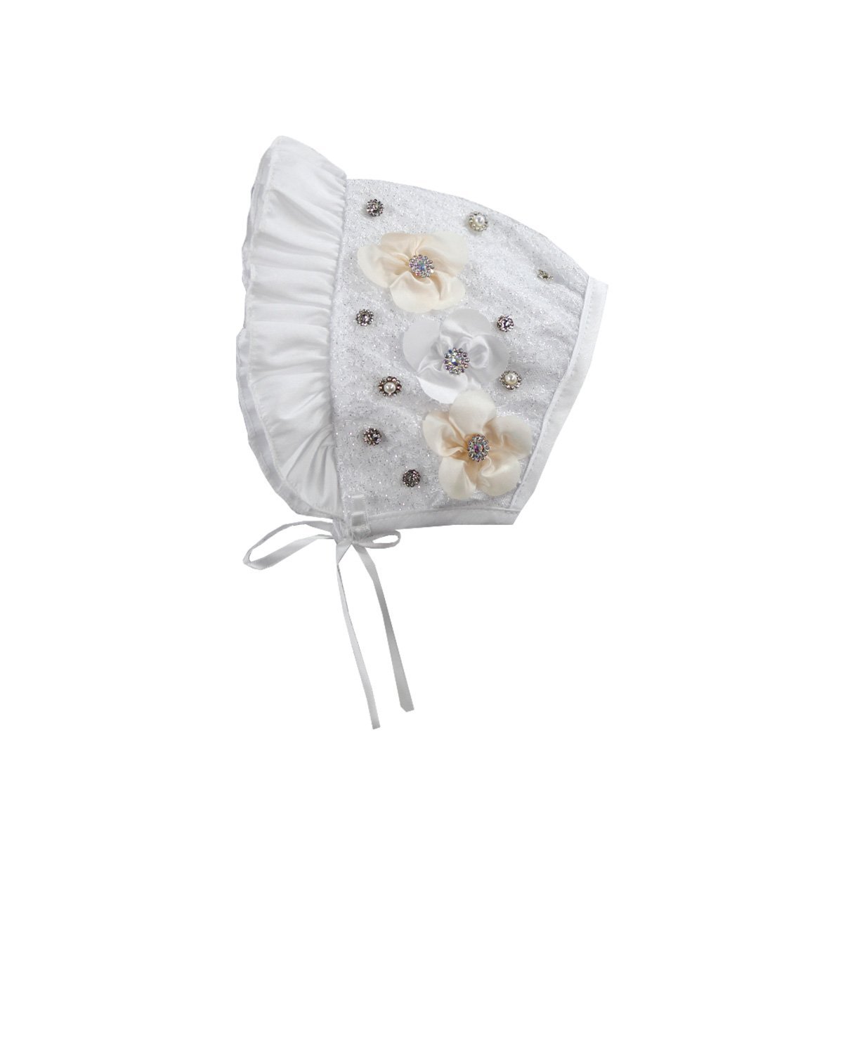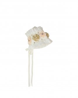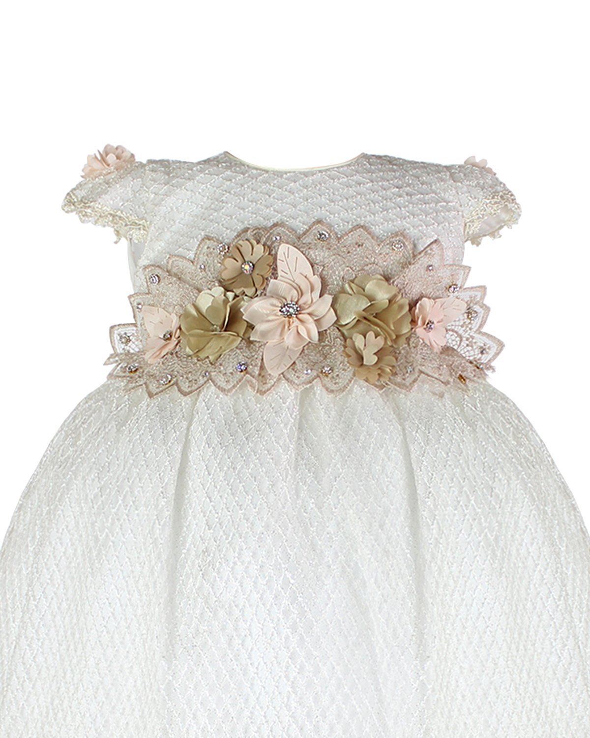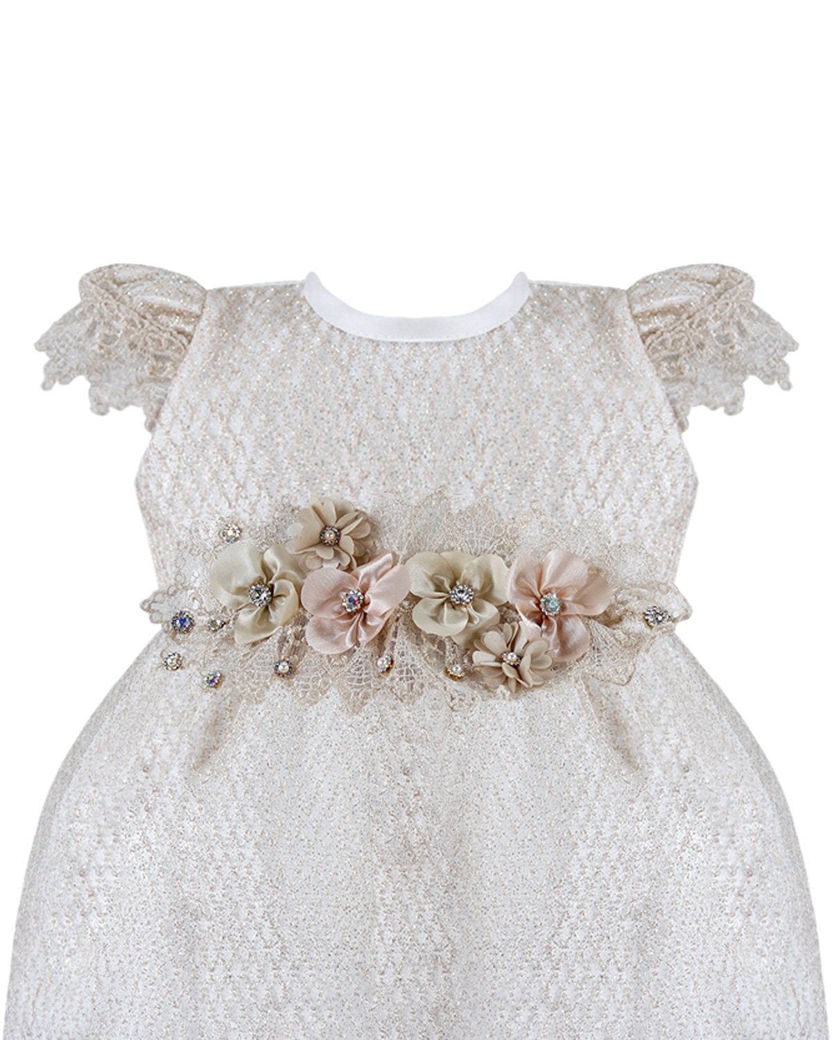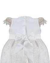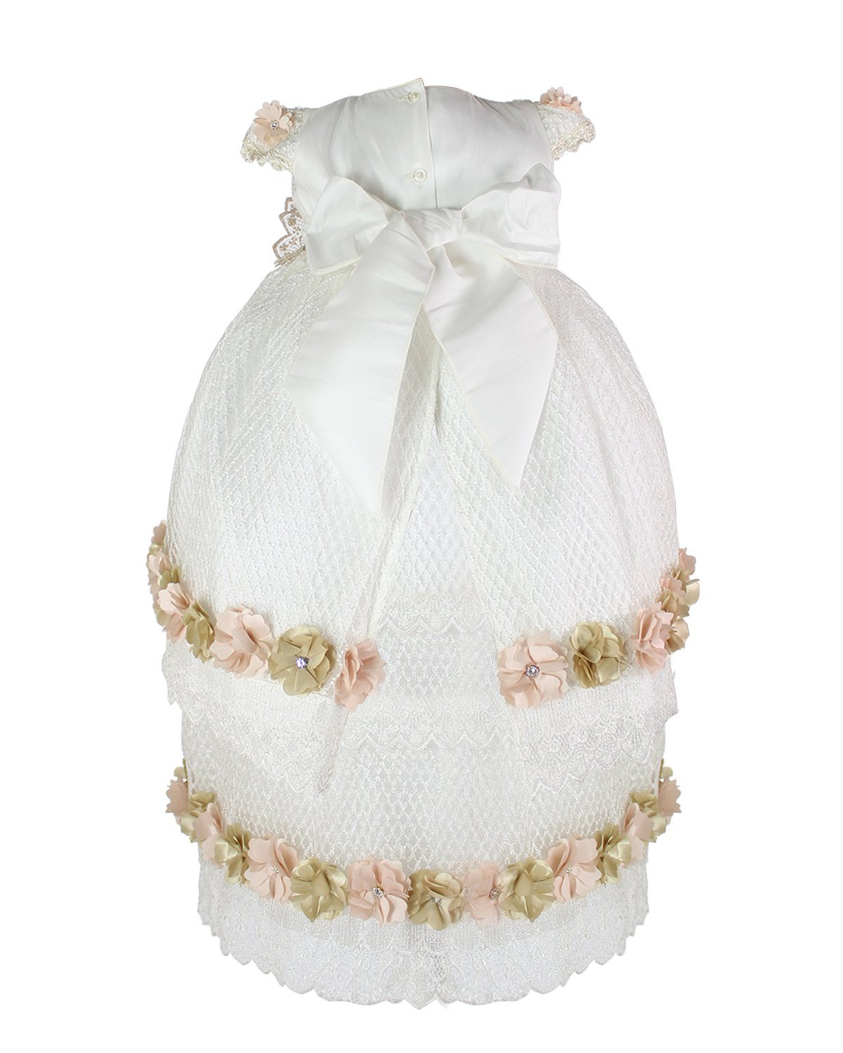 This baptism gown for a girl is a perfect choice for such a special day. Made of high-quality shantung and with unique lace details that add an elegant touch to the design, this dress is embellished with two layers of soft-toned flowers, making it truly unique. The Maylin brand made sure that every detail was perfect to make this christening gown truly special.