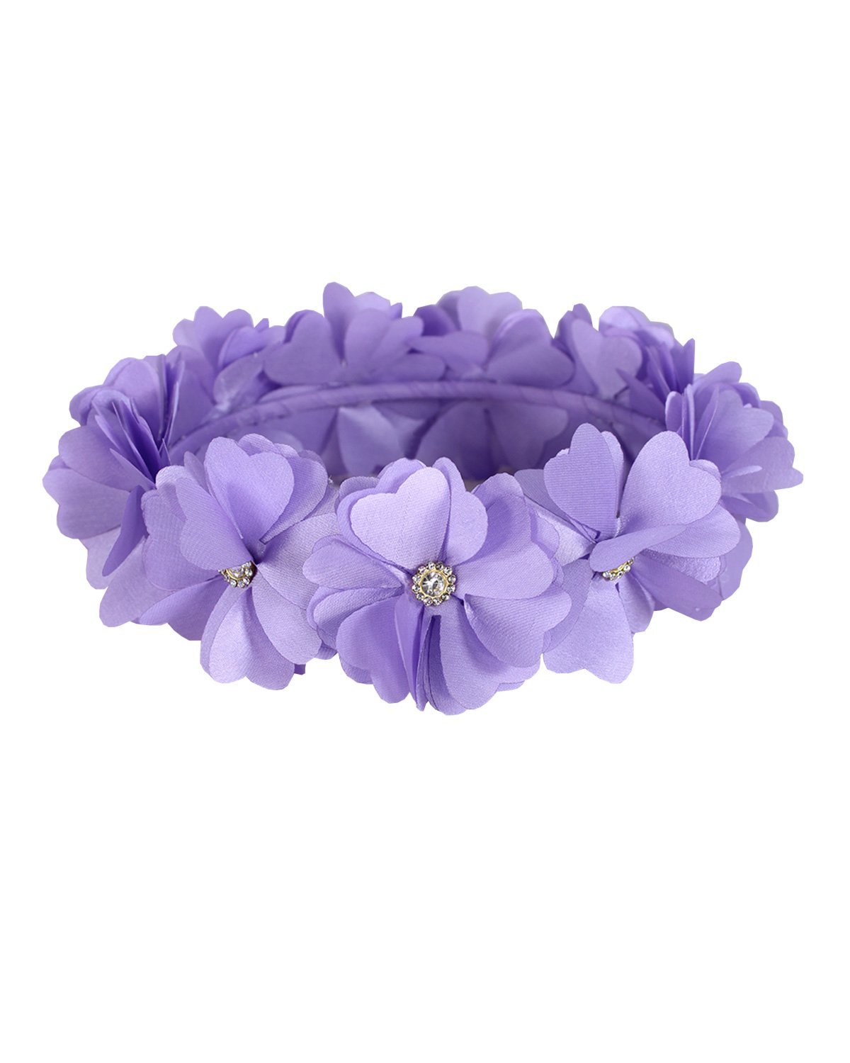 The Taffeta Flower Crown is an elegant and delicate piece crafted from laser-cut taffeta fabric. Adorned with cubic zirconia and pearl centers, this crown adds a touch of sparkle and sophistication to any special occasion.