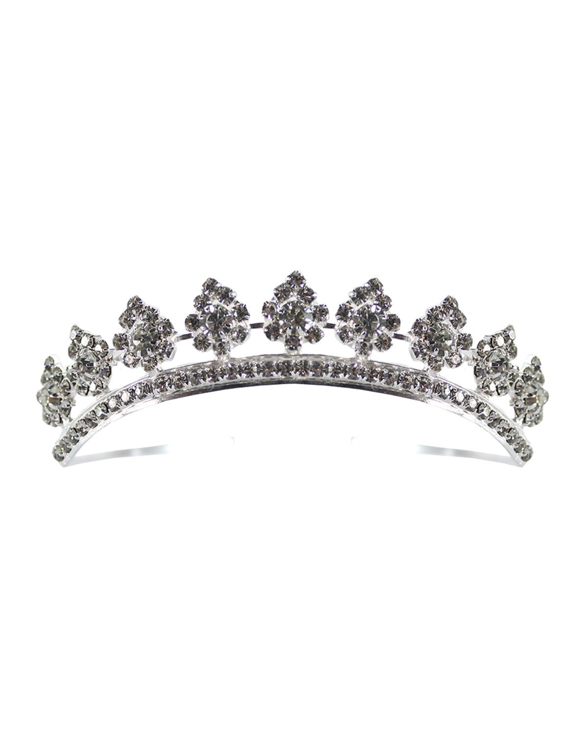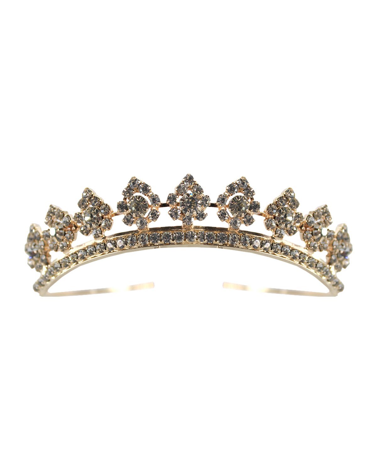The Irene Tiara for girls is an elegant and sophisticated accessory, crafted with rhinestones embedded in a brass frame. Perfect for special occasions, this crown enhances your daughter's natural beauty.