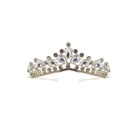 Girls' crown with drop-shaped and circular rhinestones on a brass frame.