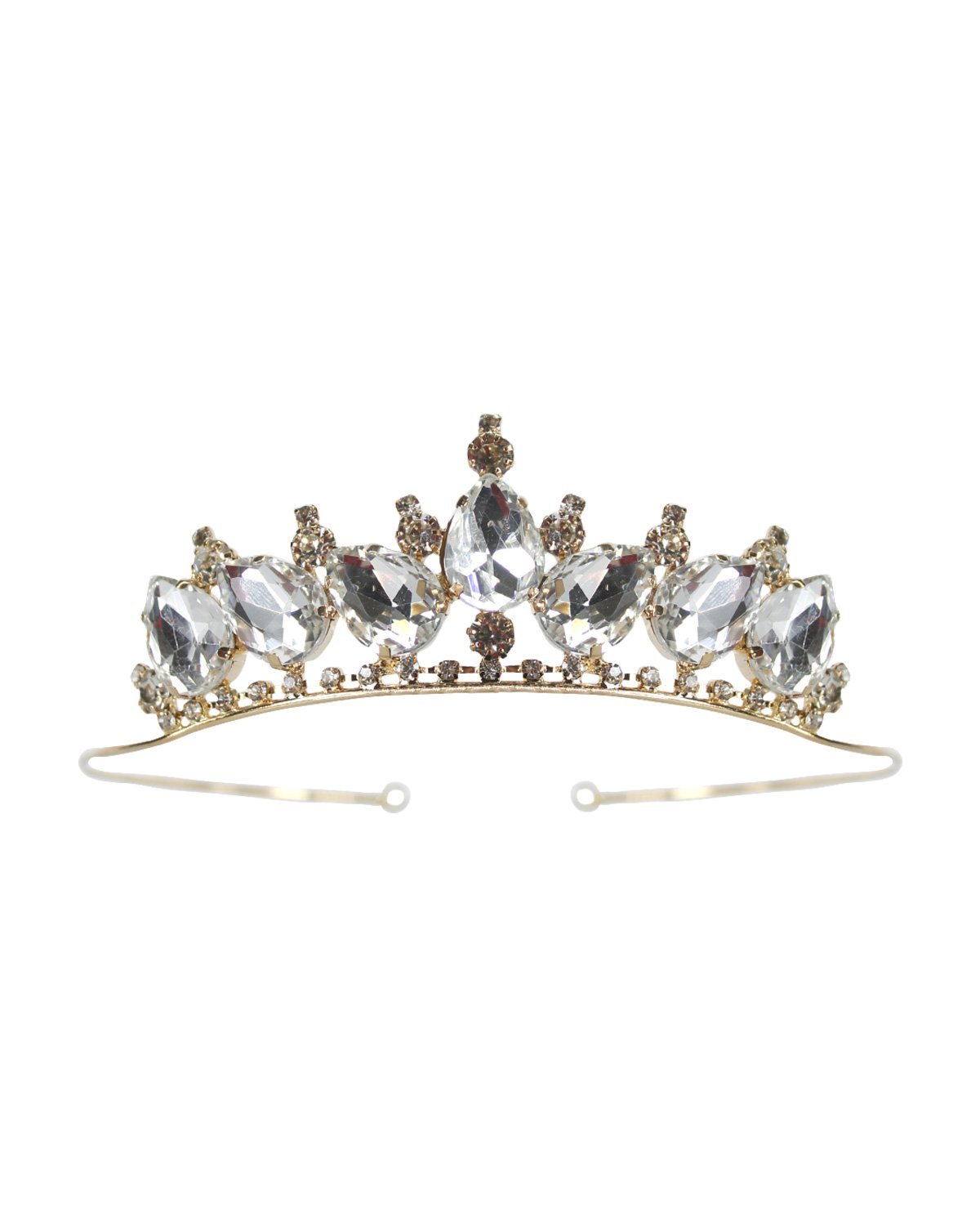 Girls' crown with circular rhinestones on a brass frame. Elegant and delicate design.