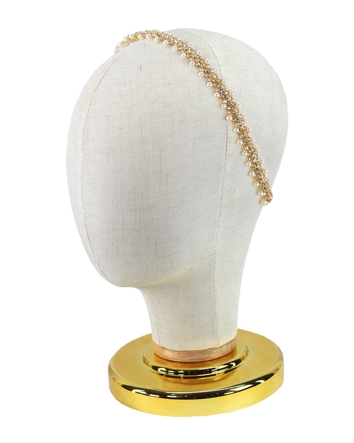 Headpiece for girls with transparent beads and pearls woven into coated aluminum wire. Available in gold and silver combinations, perfect for special events like baptisms and first communions.