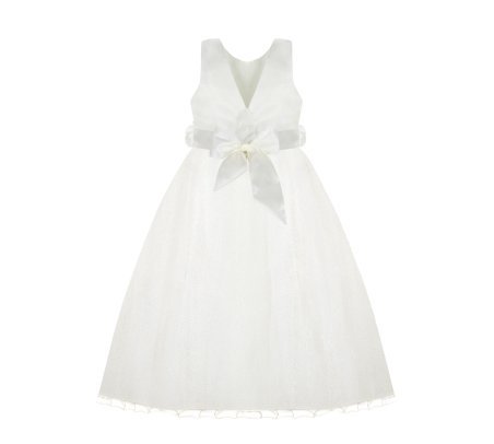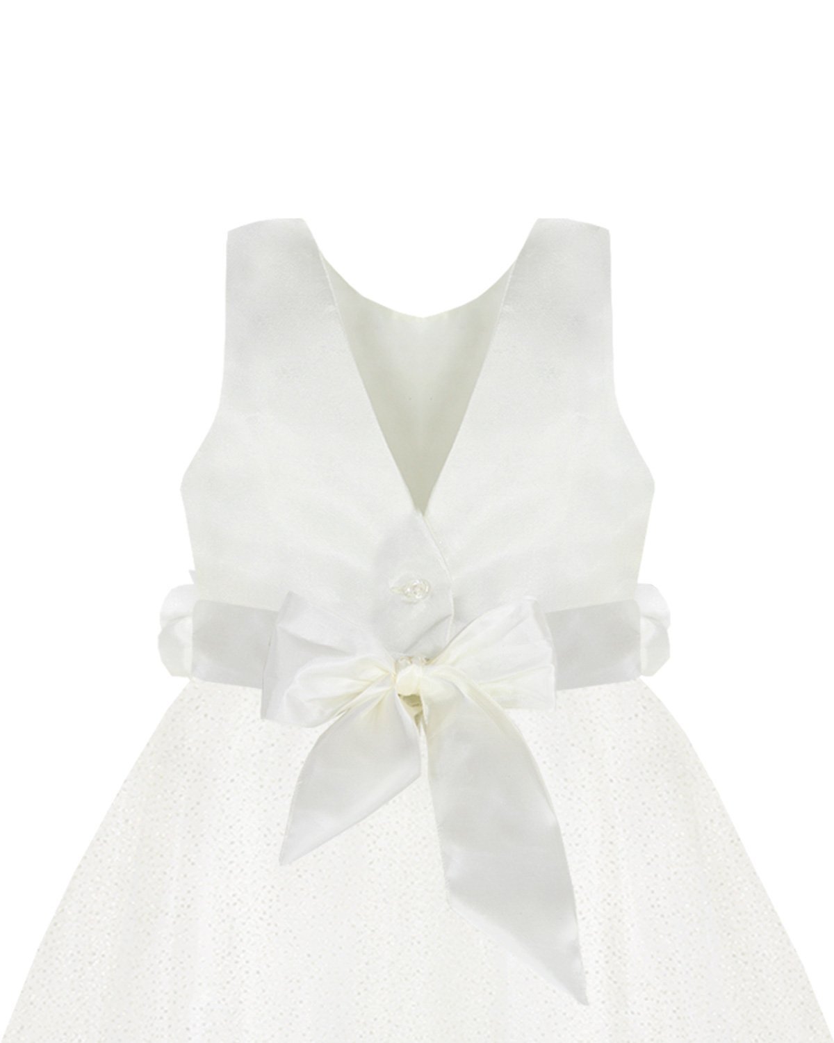 This special piece for girls is a perfect combination of glamor and elegance. It's made from a soft, lightweight taffeta for optimal comfort and a professional finish. The dress comes with a lining and a veil that will give your daughter a unique and charming style. Plus, the shimmering glitter adds the perfect touch of charm for any special occasion.