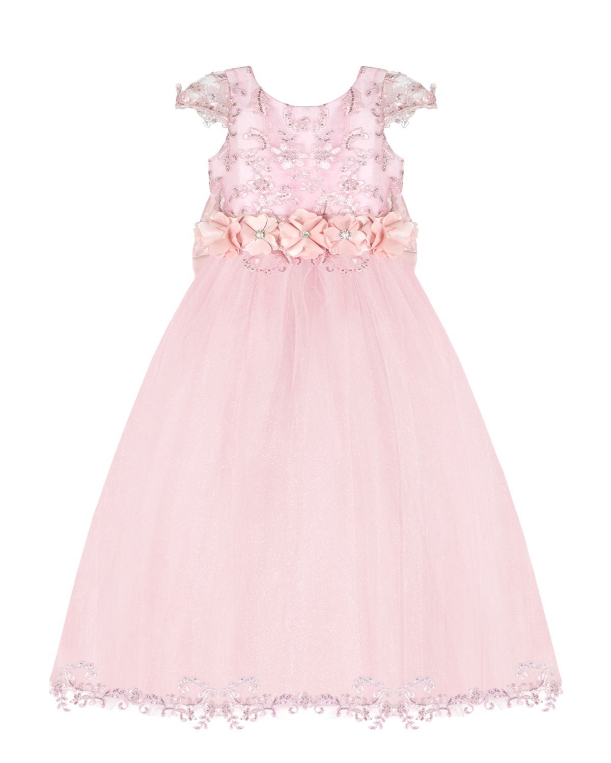 Elegant girl's dress, Glittel tulle with embroidery and flowers, butterfly bow with pearls and crystal.