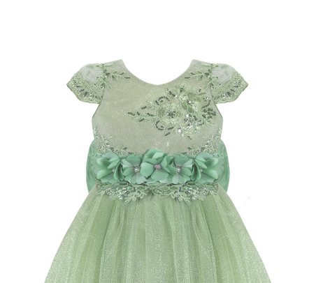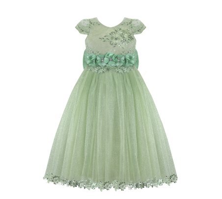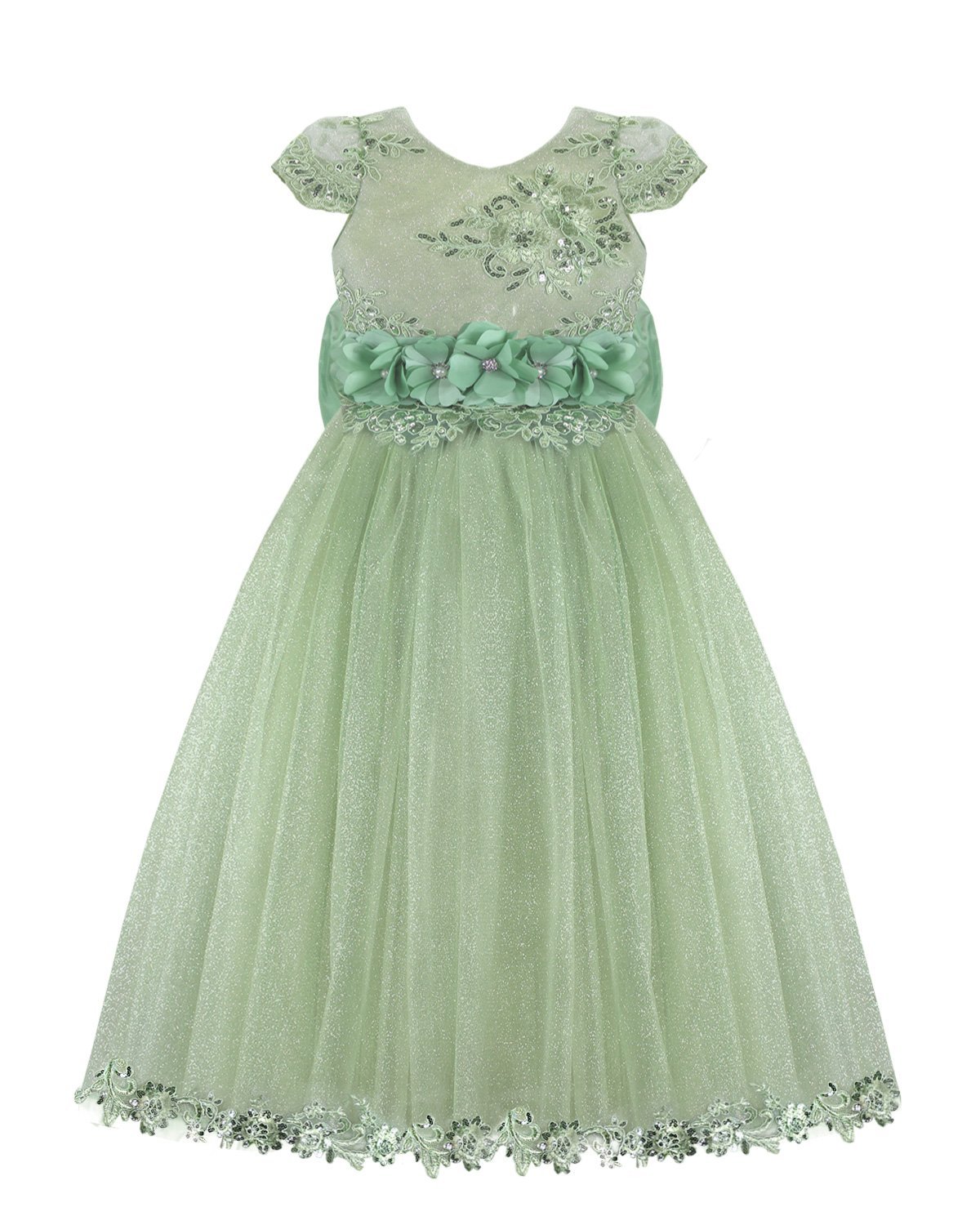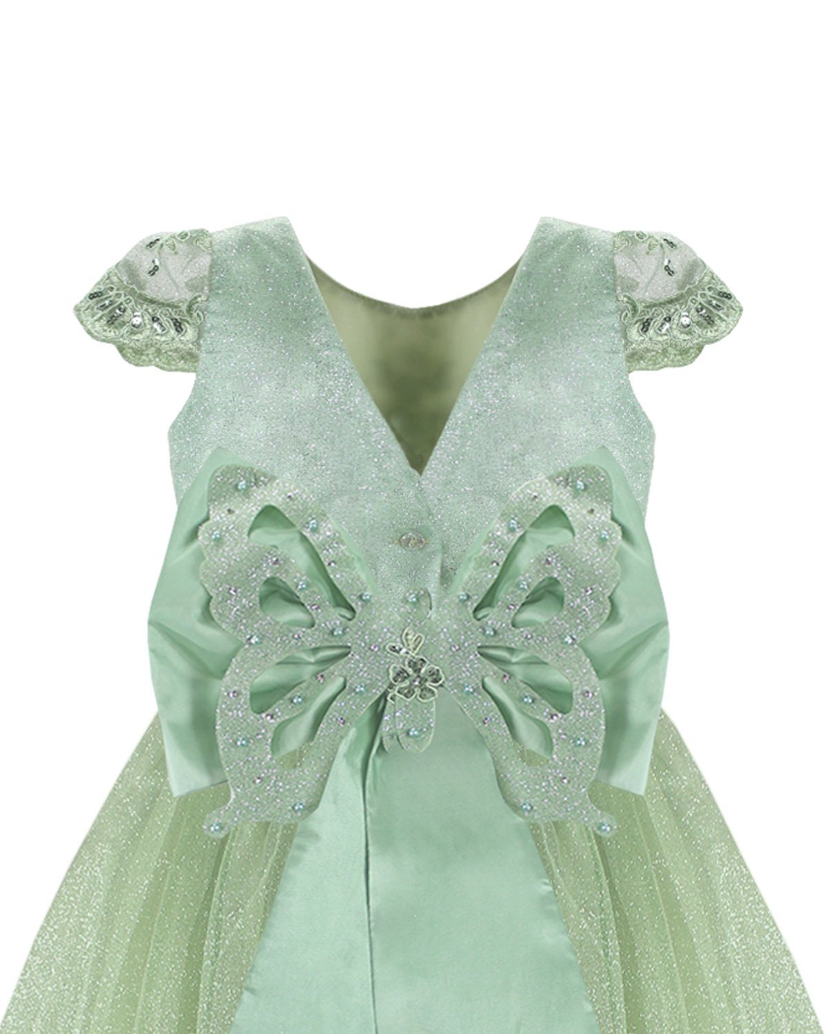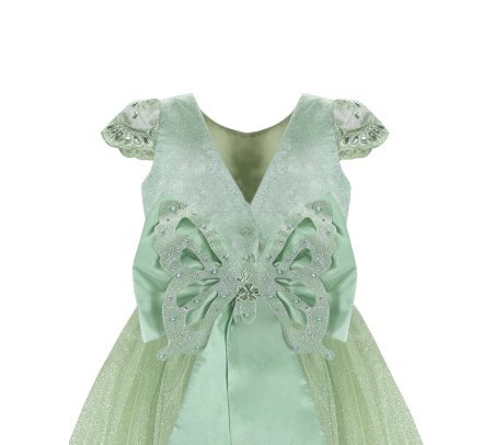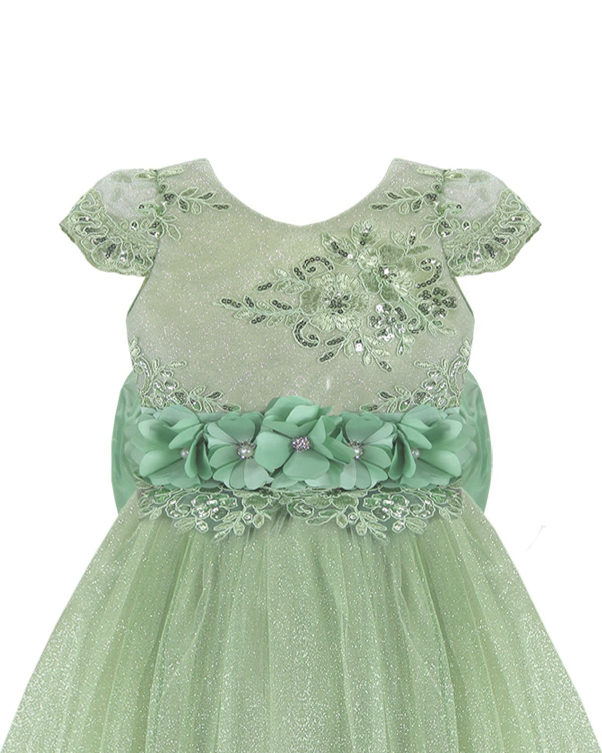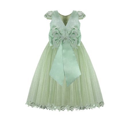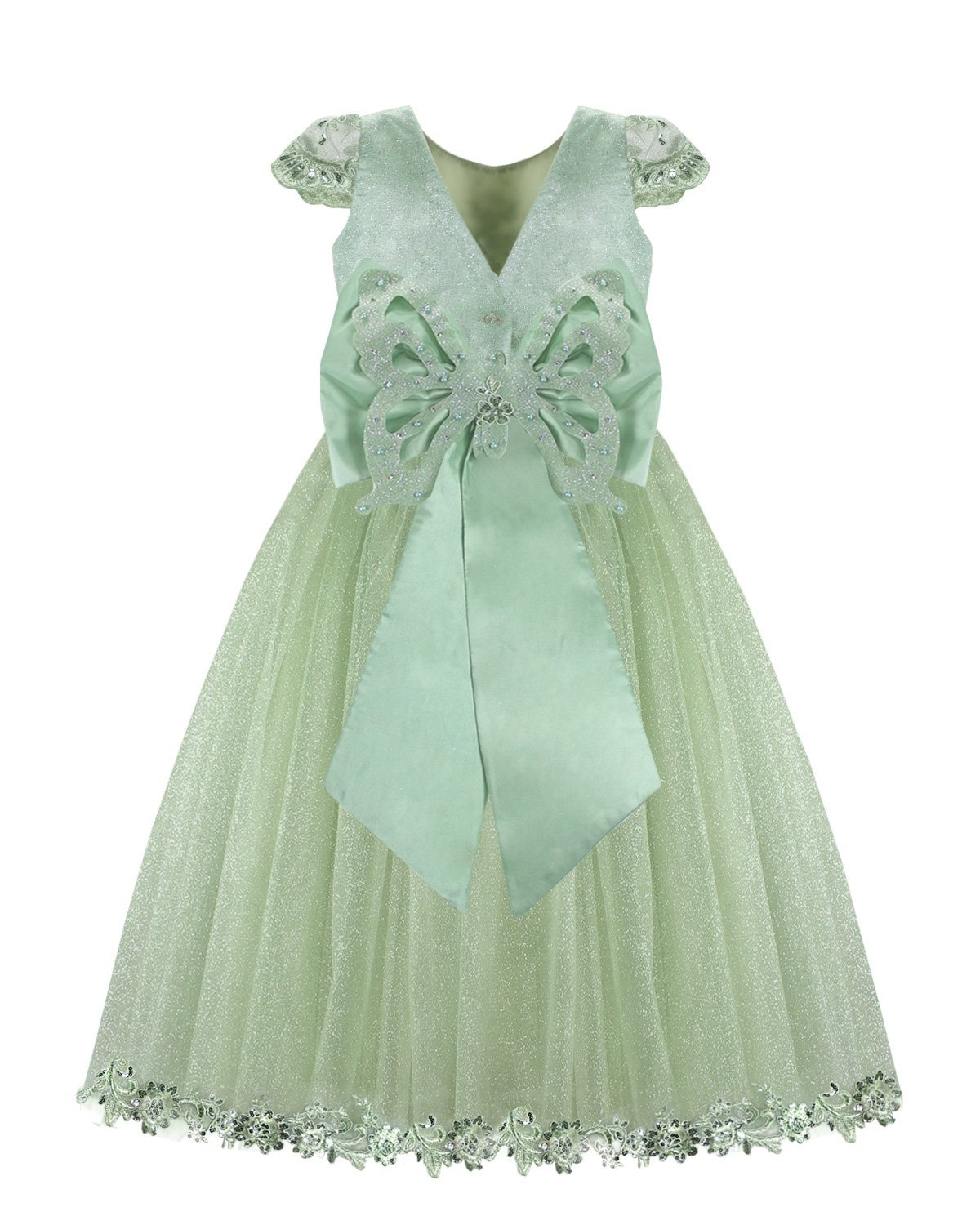 Elegant girl's dress, Glittel tulle with embroidery and flowers, butterfly bow with pearls and crystal.