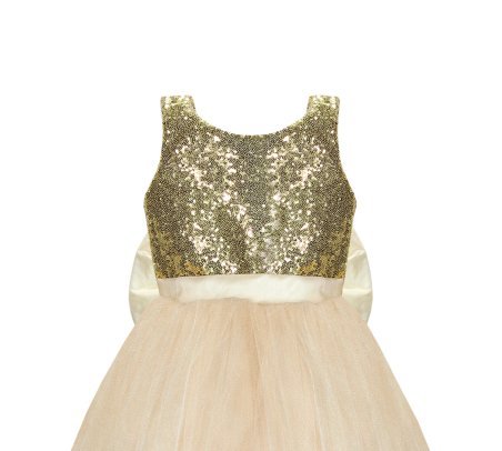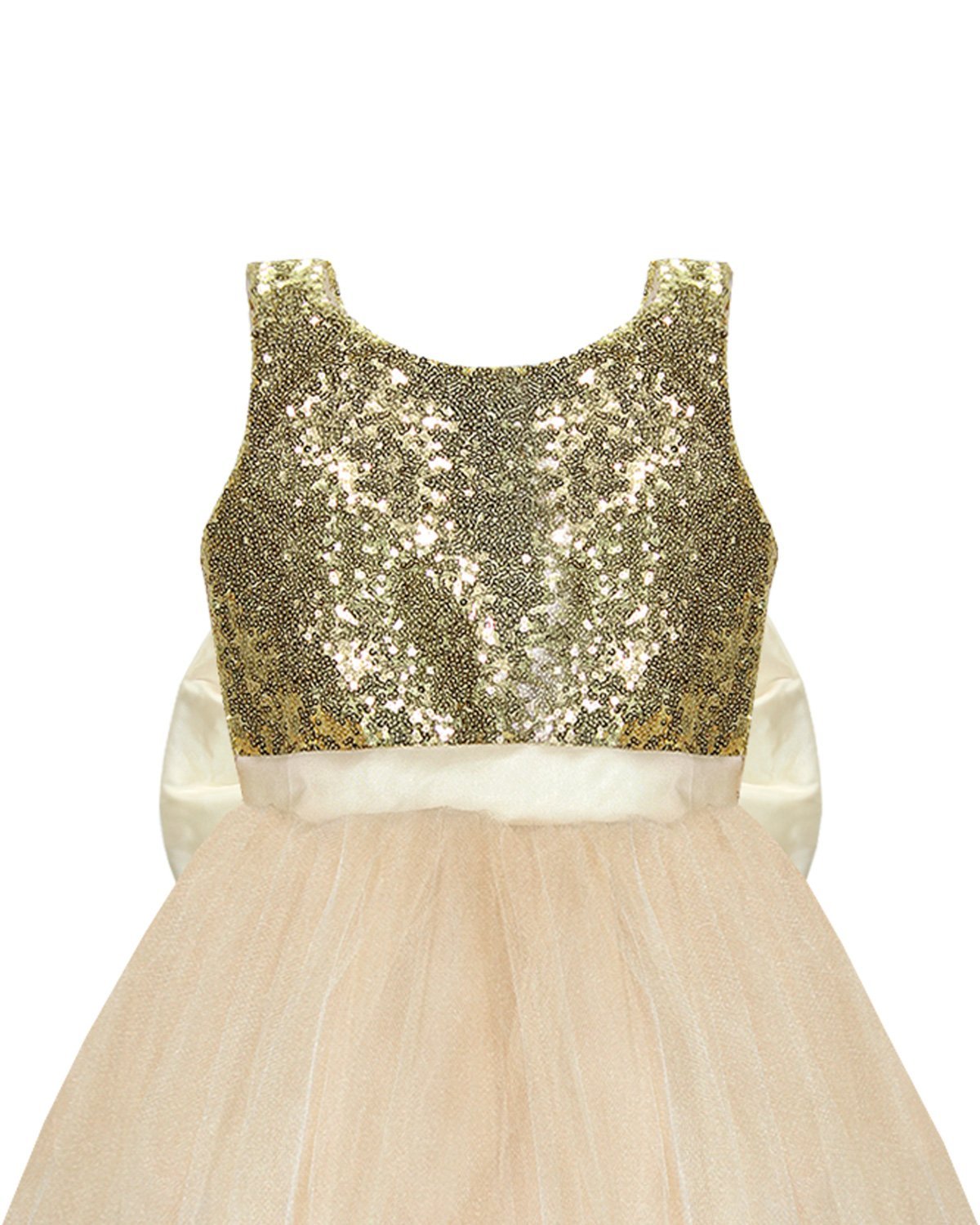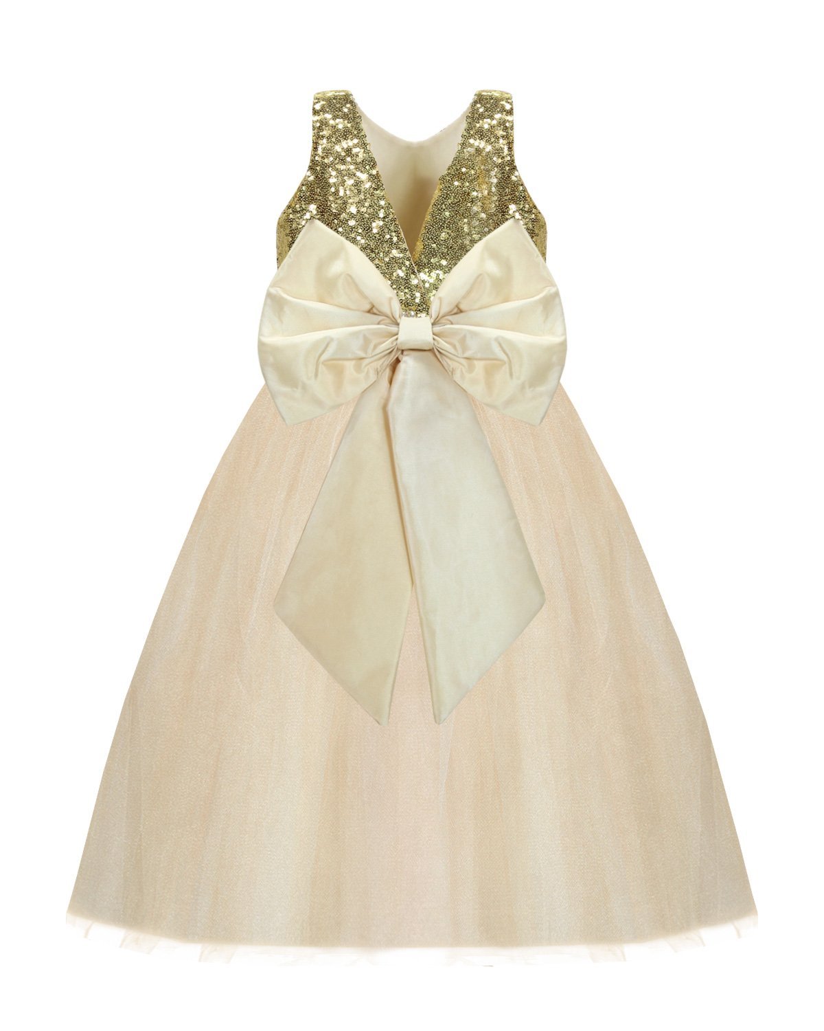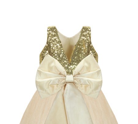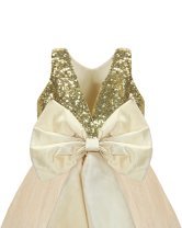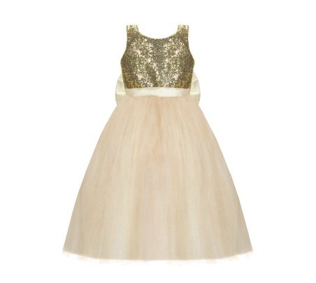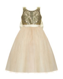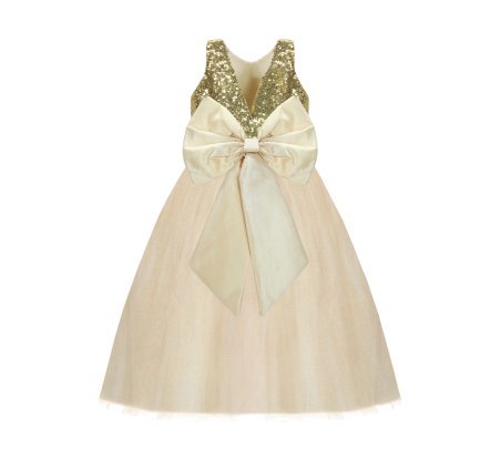 Beautiful and elegant girl's dress, made of tulle with sequin detail on the bodice and an elegant bow on the back.