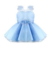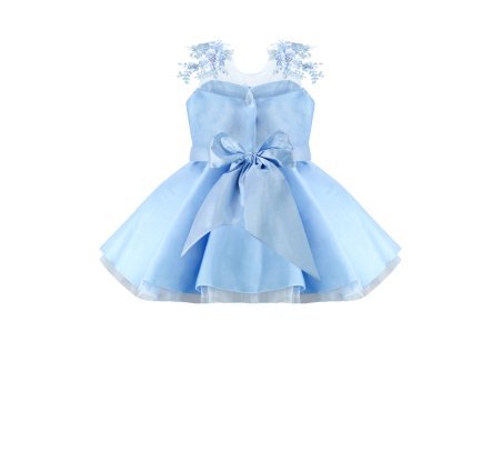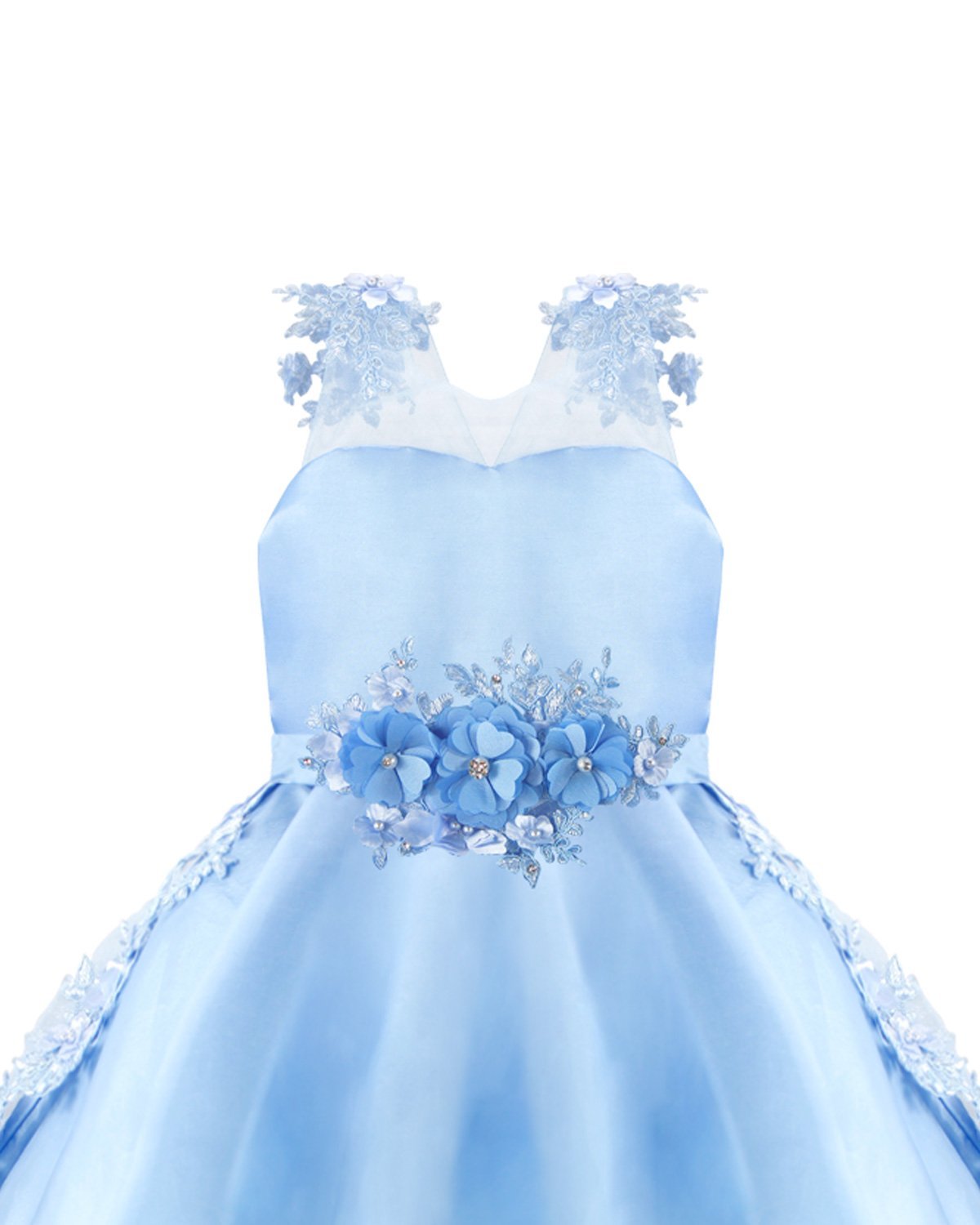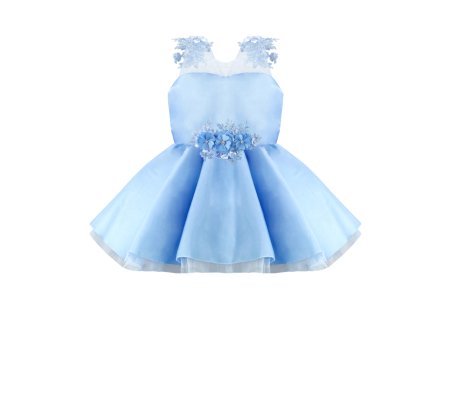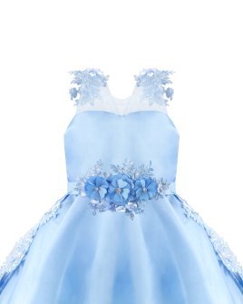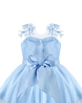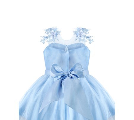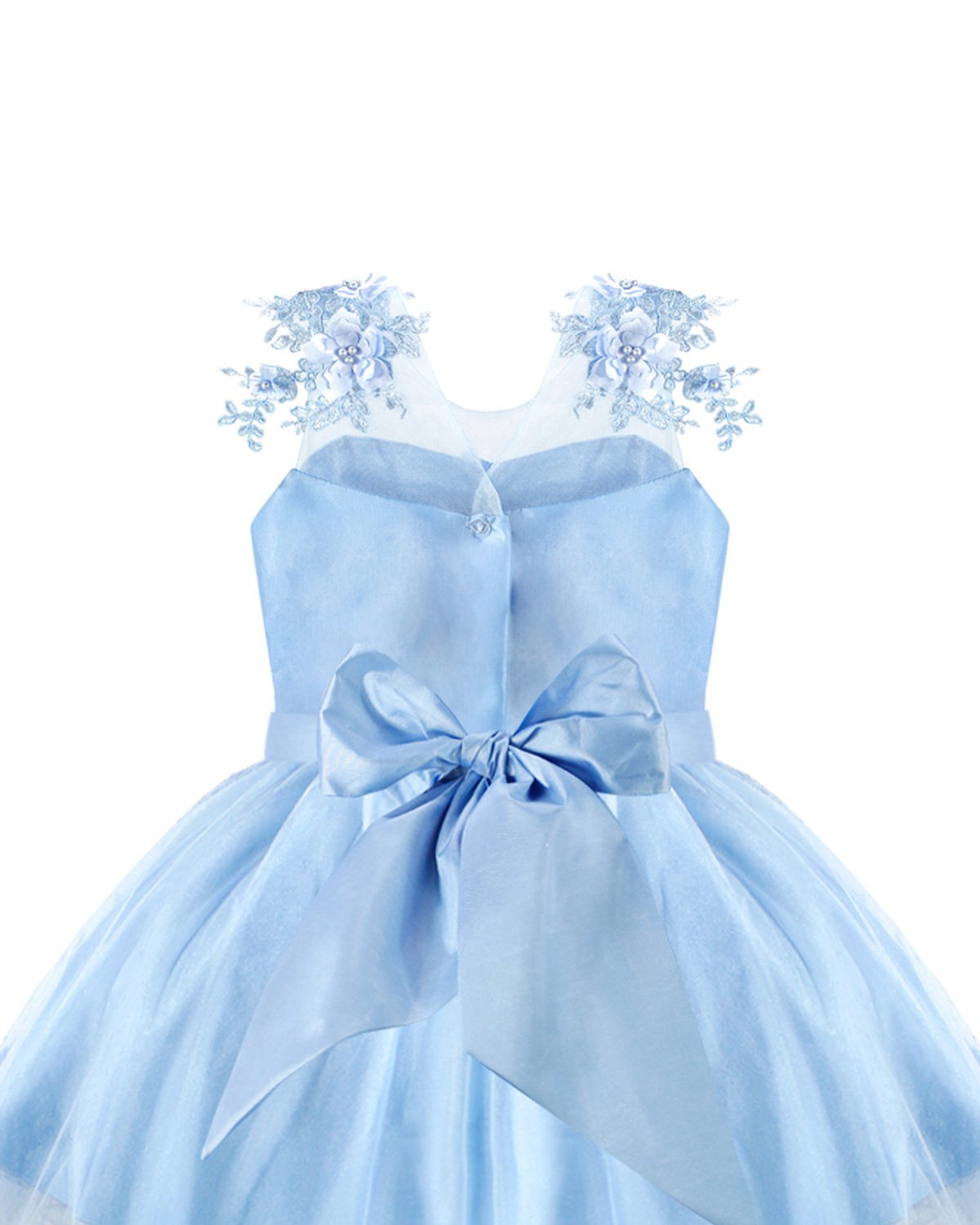 Girl's dress elegant short tulle and taffeta skirt with appliqués of embroidered flowers with a 3D finish, pearls and crystal stones with detachable tail and embroidery designs.