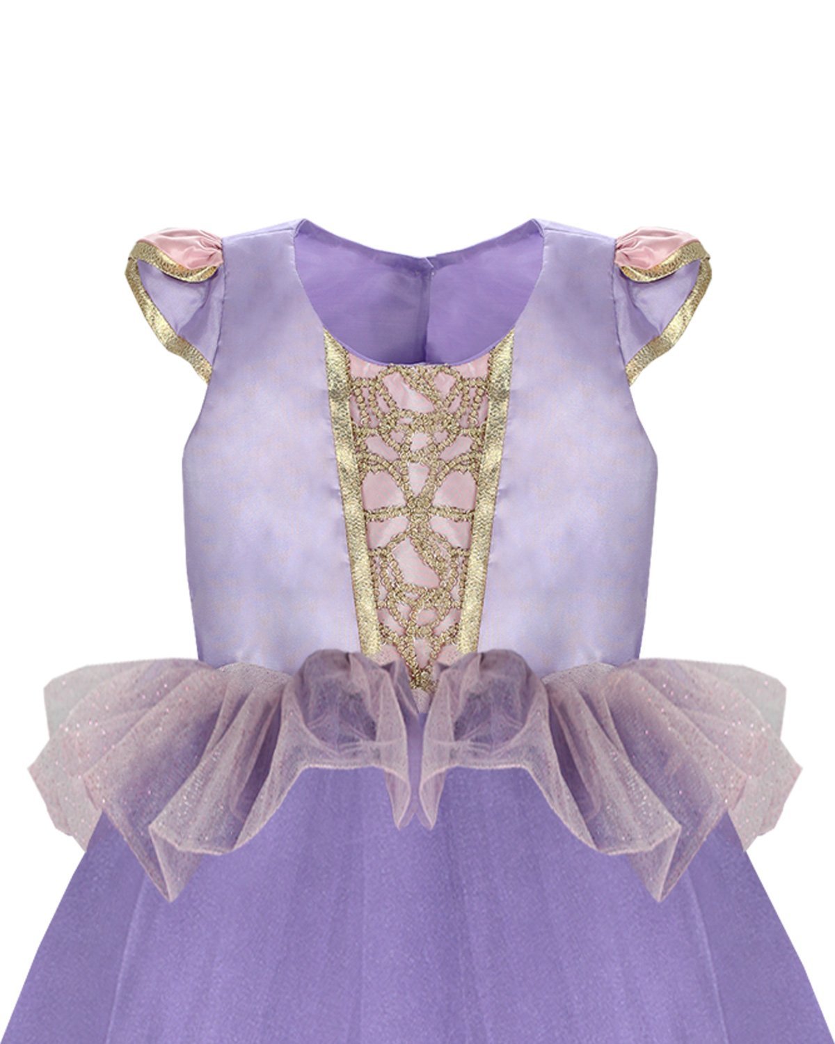 Let your daughter feel like Princess Rapunzel in this stunning Maylin costume! Crafted from a high-quality combination of lining, veil and taffeta, this costume features gold-colored appliqués and a beautiful flower crown included. This costume is perfect for any princess-themed event or fancy dress party.